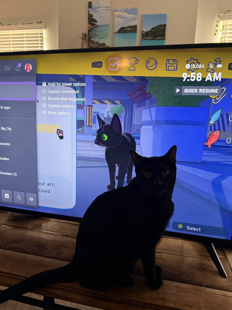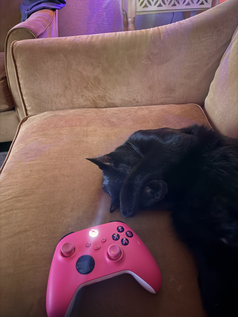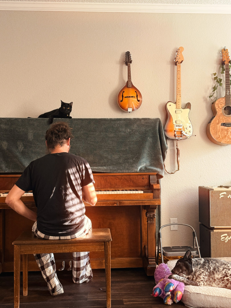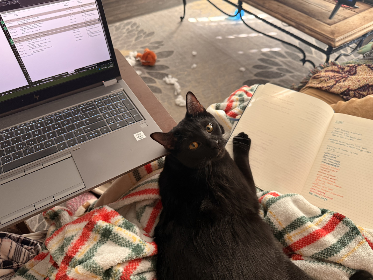 If an animal can be known for their sweet personality, that’s Gaius. He’s never met a stranger; he sleeps at our feet and waits for the alarm before face cuddles; he gets excited when we pull up to his cat friend’s house; he watches the sunrise on the patio with us; he pulls your face closer to his so he can touch noses; he sits in your lap while video gaming; he lounges while you play the piano; and he loves to talk!
