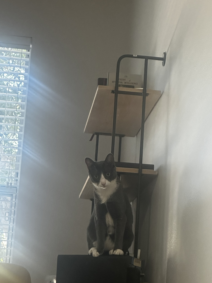She learned how to open the cabinet and steal treats. She hits the play button on my laptop when I’m ignoring her. She steals my AirPods from the case. She is very smart