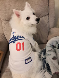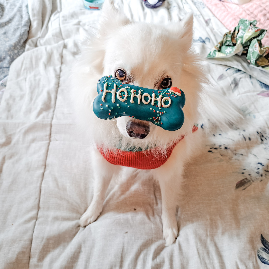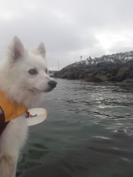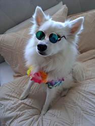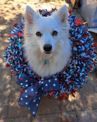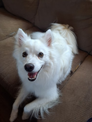 Rambunctious Eskie who will do tricks for treats.