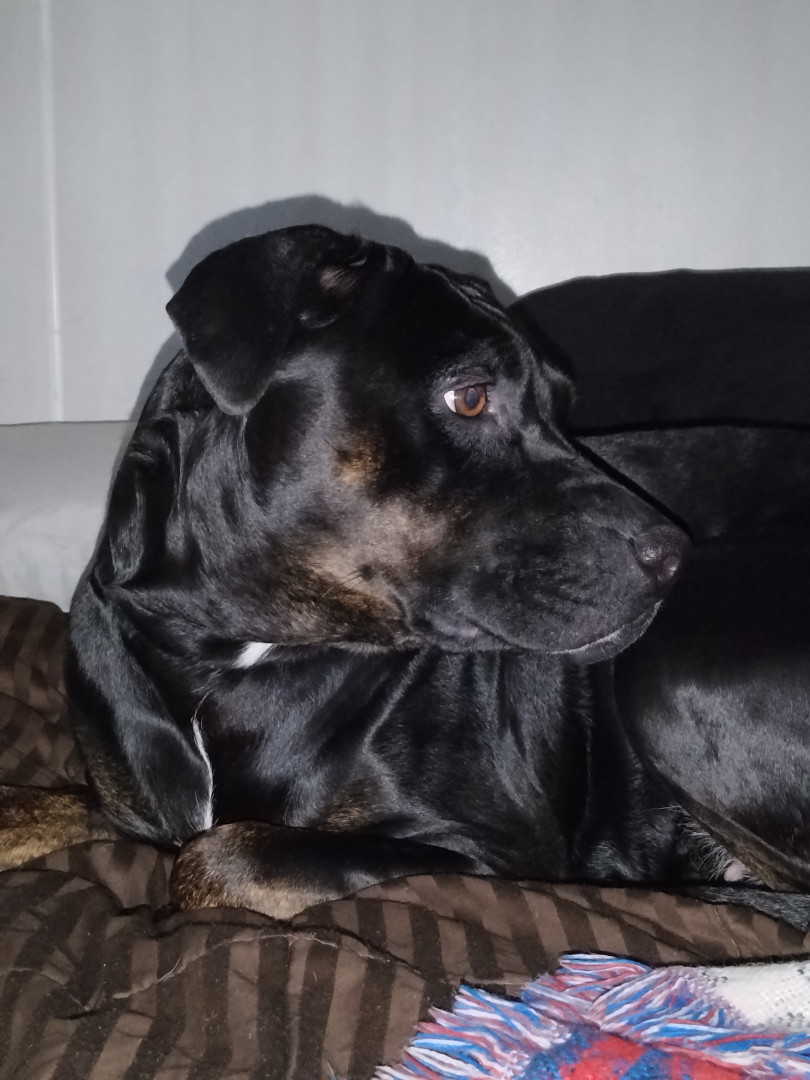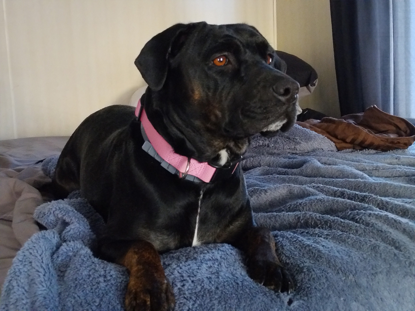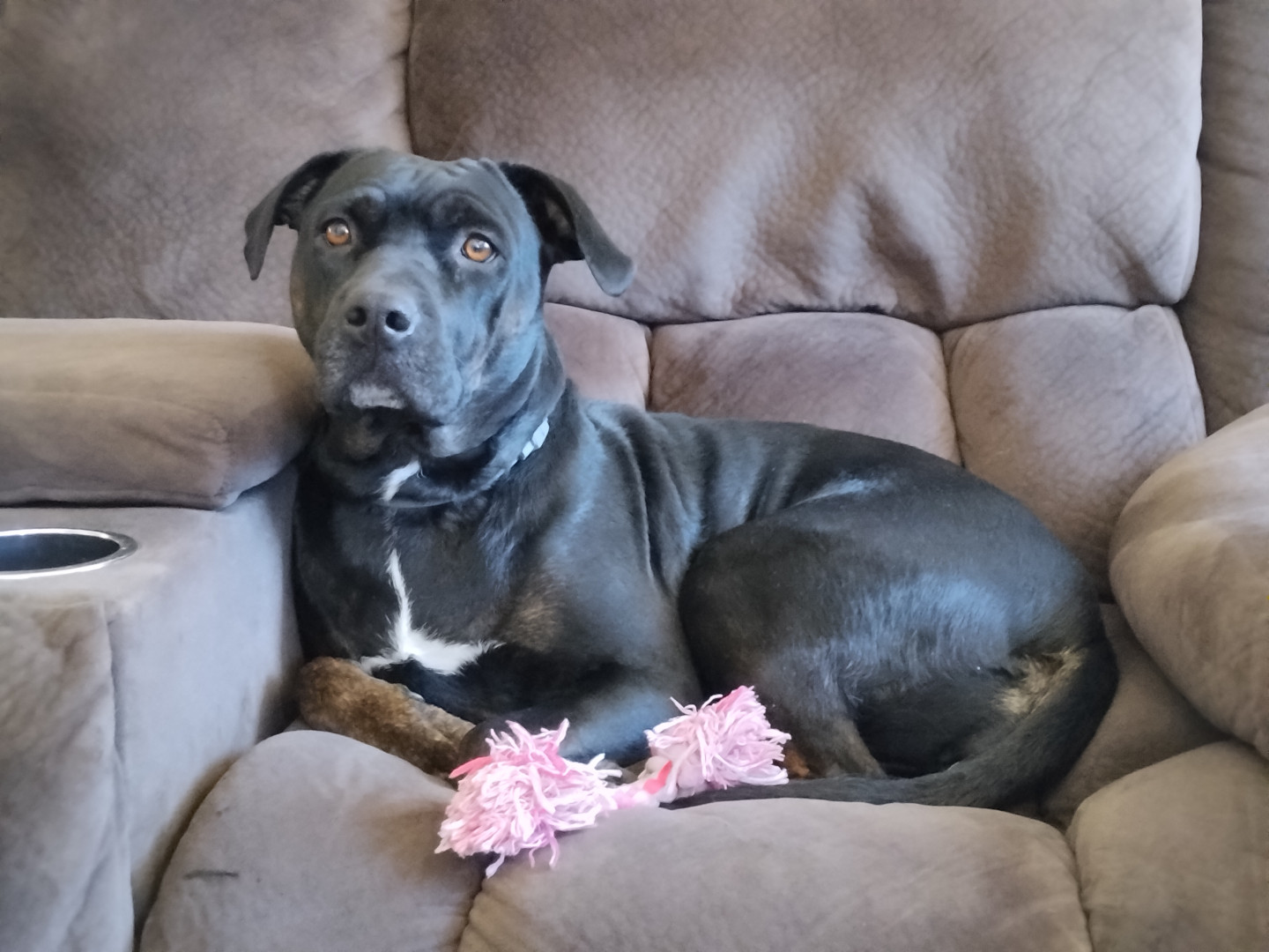 Gemini is her name she is a beloved member of our family,she is the sweetest,kindest and most loyal dog around.love u Gem-Gem.