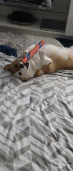 Learn MoreShe loves her squeaky toys. As for treats she can't pass up her ice.