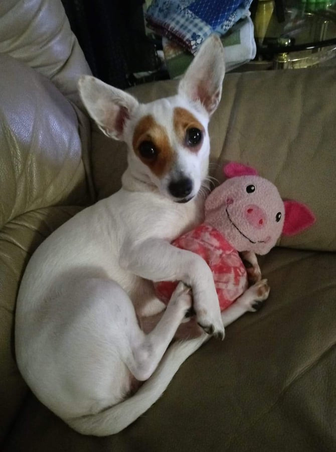 Gemma is a feisty Jack Russell chiweenie and she is a spoiled mamas baby. She is very protective of her family and also very playful.