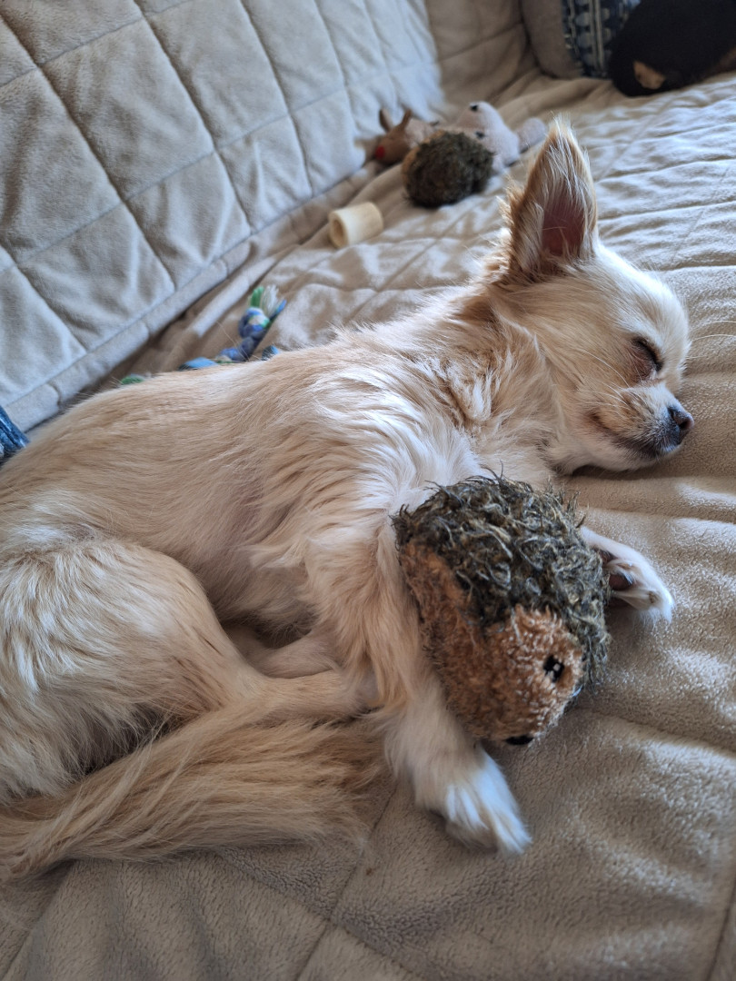 Gemma Lu, 2yo Chi/Shih Tzu mix. Playful and funny. Loves to play with balls & chew on her bone toys. Spends time sunbathing on the deck.