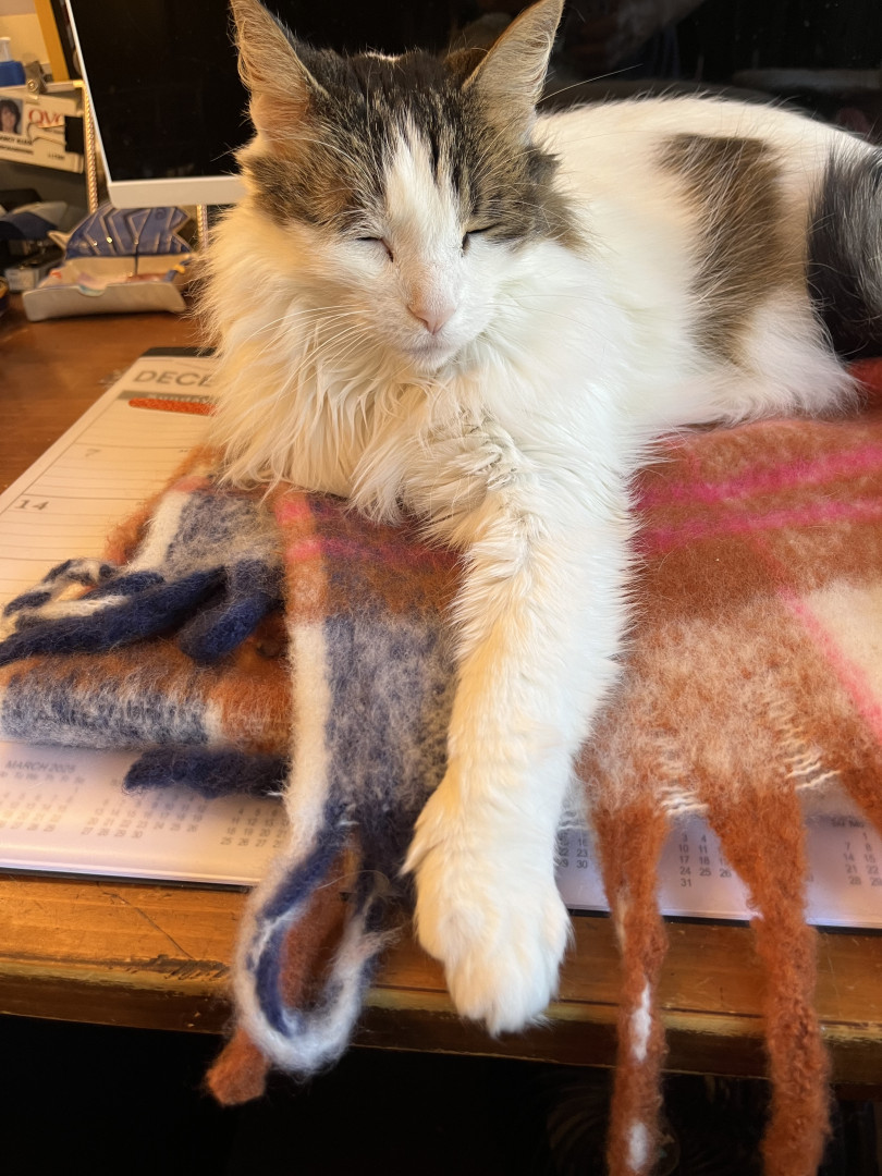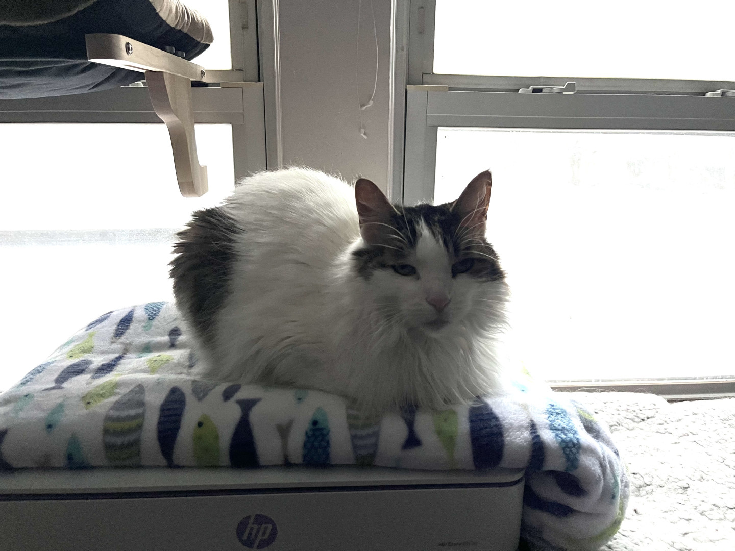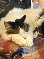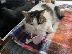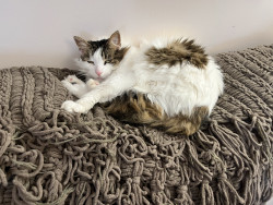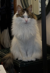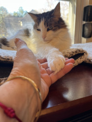 She’s a beauty! She’s nine years old and still has the spirit of a kitten. Her long fur feels like cotton…she is a mushy love with a sassy side to her! I just love her and America will too!
