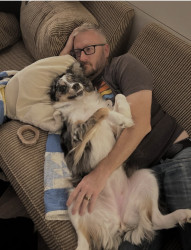 She has helped me when I was in a dark place dealing with legal issues after my father’s death and me becoming sick two years ago with gastroparesis. When I a super sick she lays right by my side. I believe pets can be guardian angels. She is also my bible reading buddy. Since all this I am trying to get back to my catholic faith ♥️