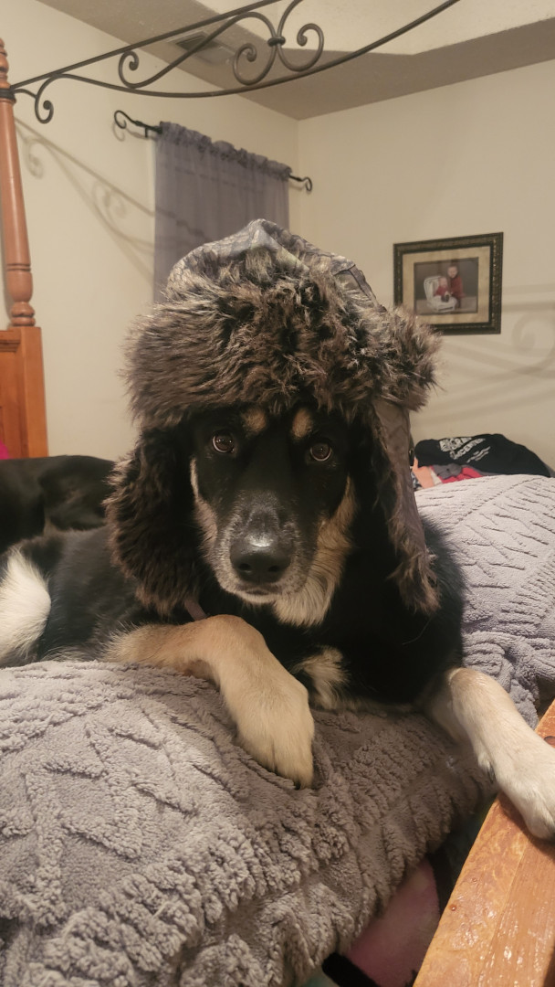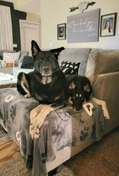 She has a lot of unique qualities but I think my favorite 1 is her going & hiding... Well, let's say she thinks she's hiding anyway. It doesn't matter if she's under my King-Size bed or her 30"×25" bed, she will always have 1/2 of her body sticking out in the open & truly believe that she thinks nobody can see her HAHA!! So I have to go around the house calling her name acting like I can't find her until finally she comes running up to me houling & barking saying......Here I Am, Here I Am!