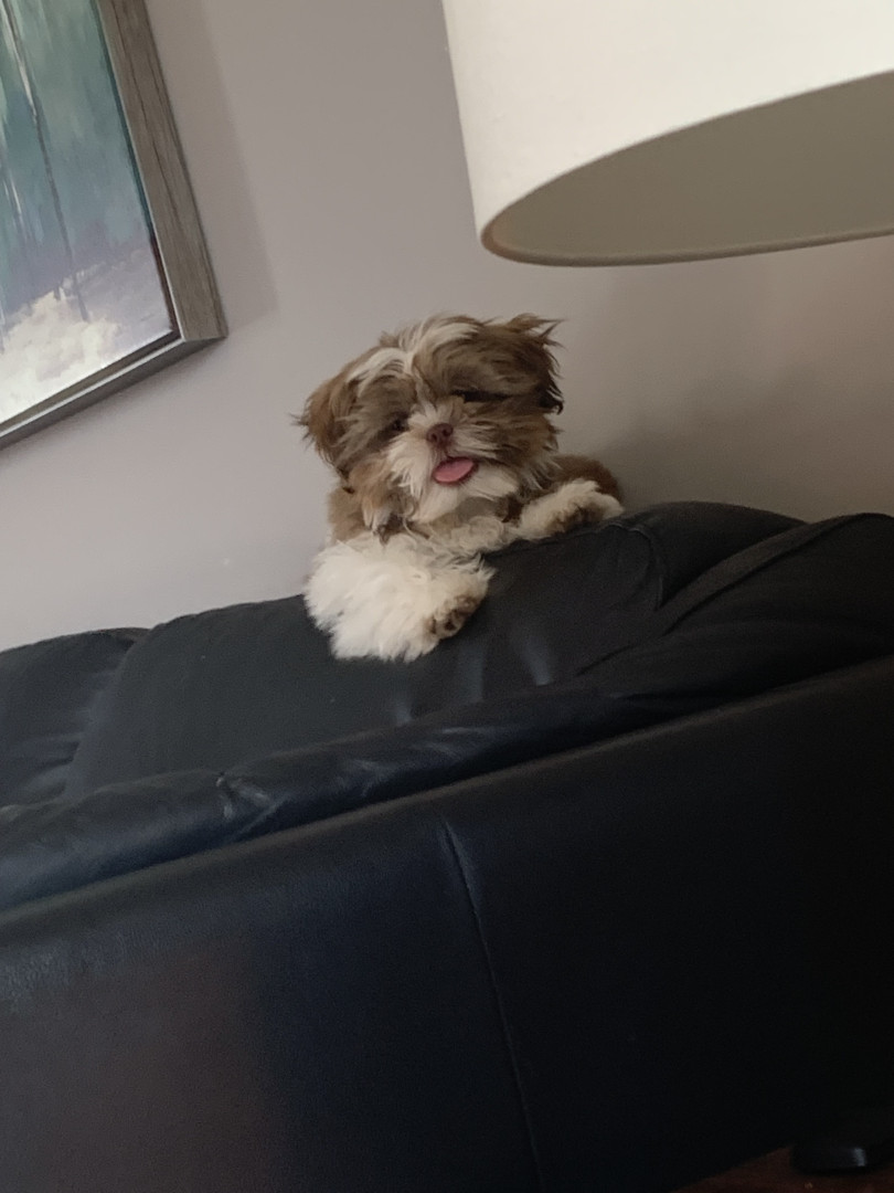 She’s a Shih Tzu puppy 10 weeks old she’s funny she’s lovable. She’s everything we needed. We loved her the minute we saw her.