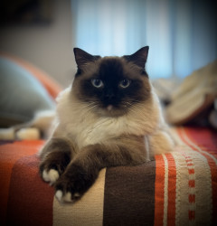 Gertie is a royal Ragdoll and rules our home with grace.