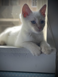 Ghost is 3 months old. He is vocal, needy, loving and so full of personality! He is adored by his 2 cat brothers.
