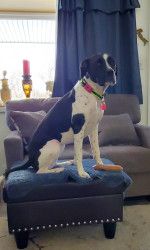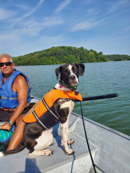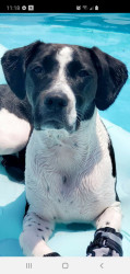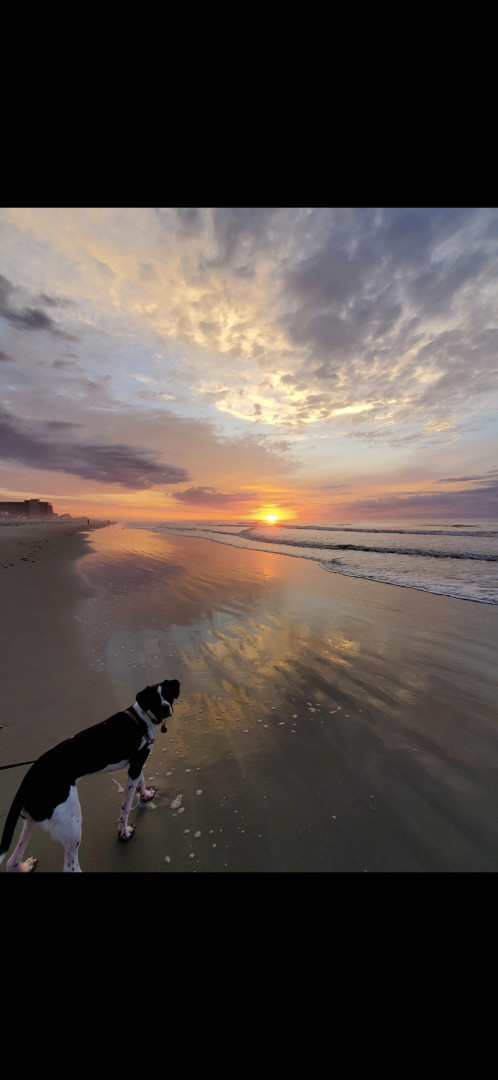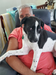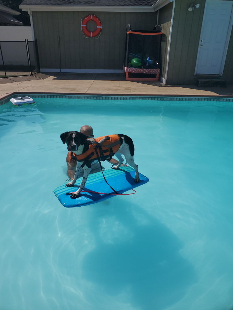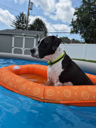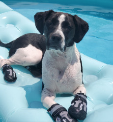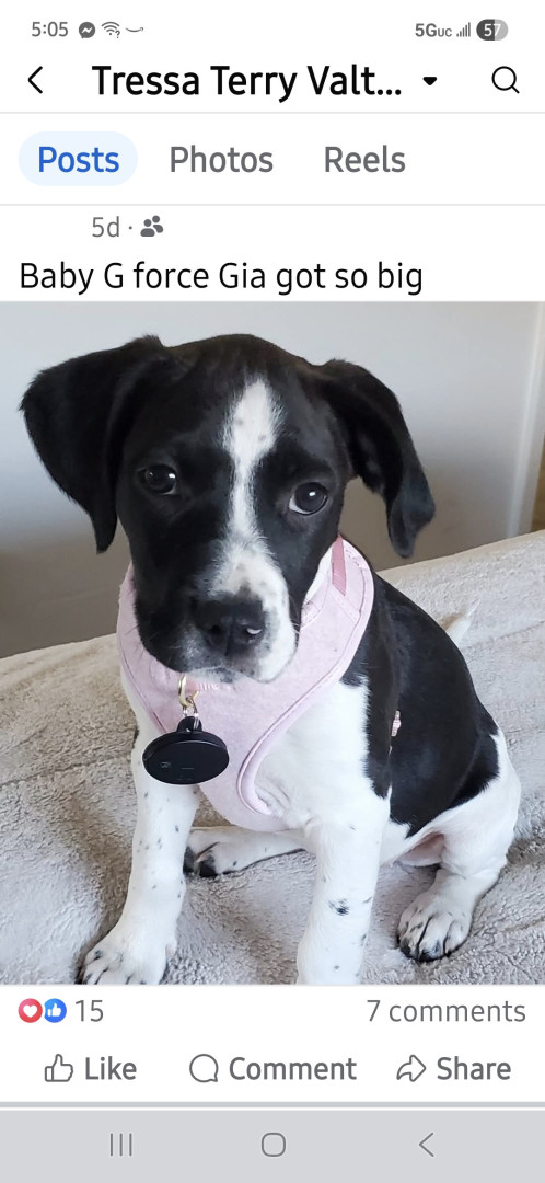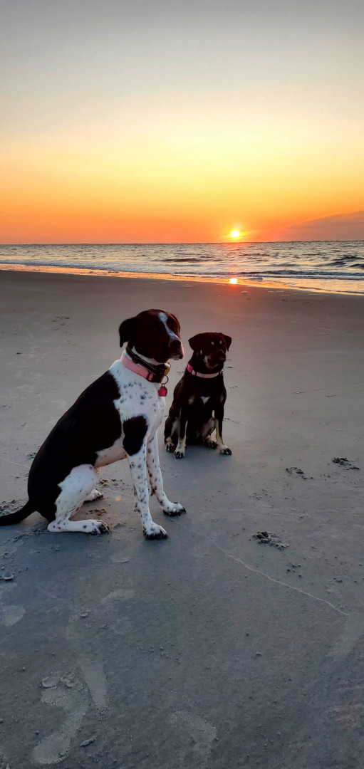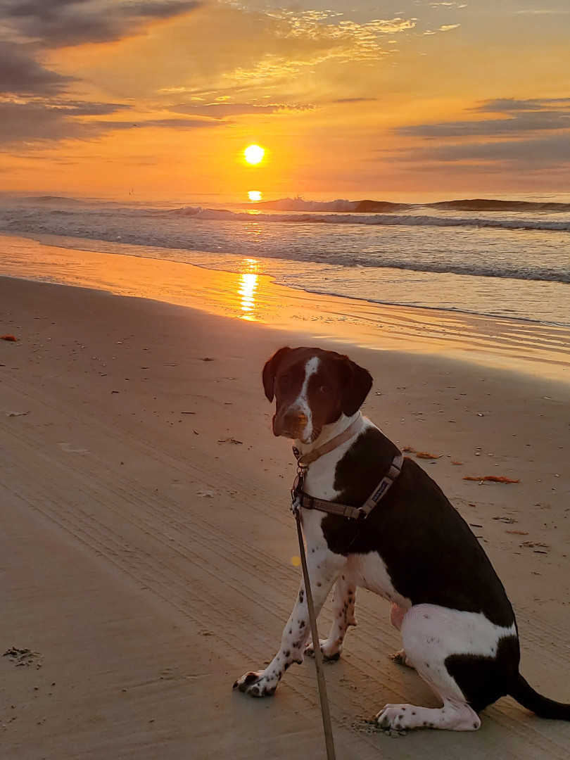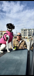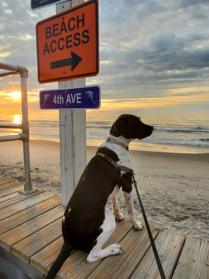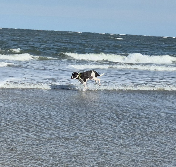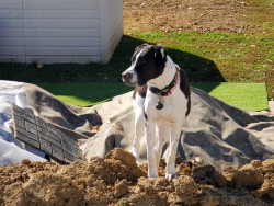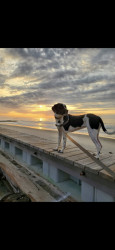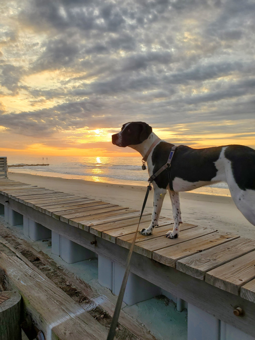 Her amazing ability to jump extremely high. At seven months old form a seated position, Gia jumped to the top of a lifeguard stand with without even trying. She loves bombing around at the beach and in the ocean, chasing all the birds on the beach or in fields. She most of all loved digging in the dirt or climbing to top of piles of dirt when her daddy had major construction going on.
