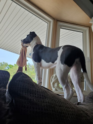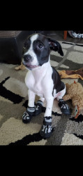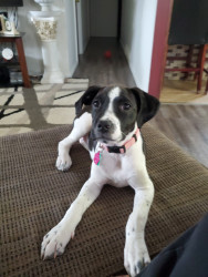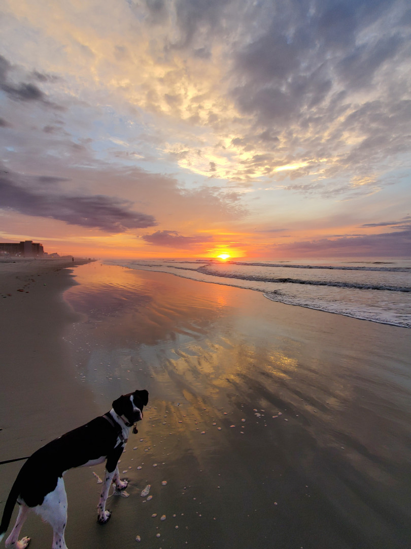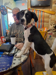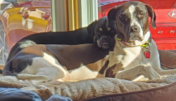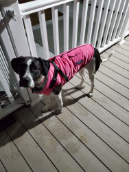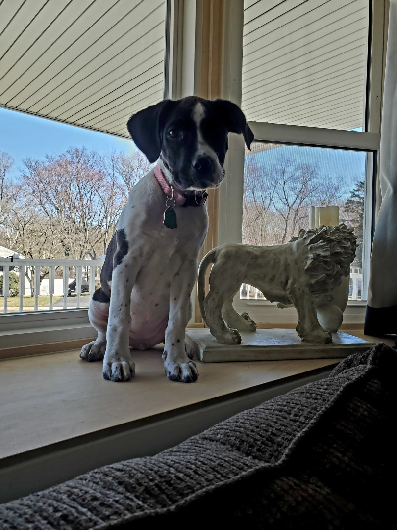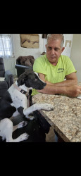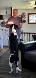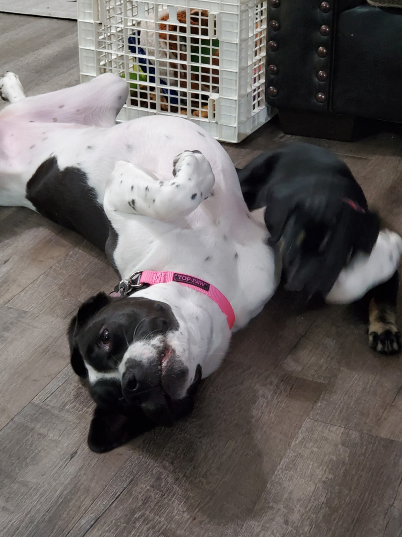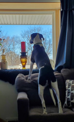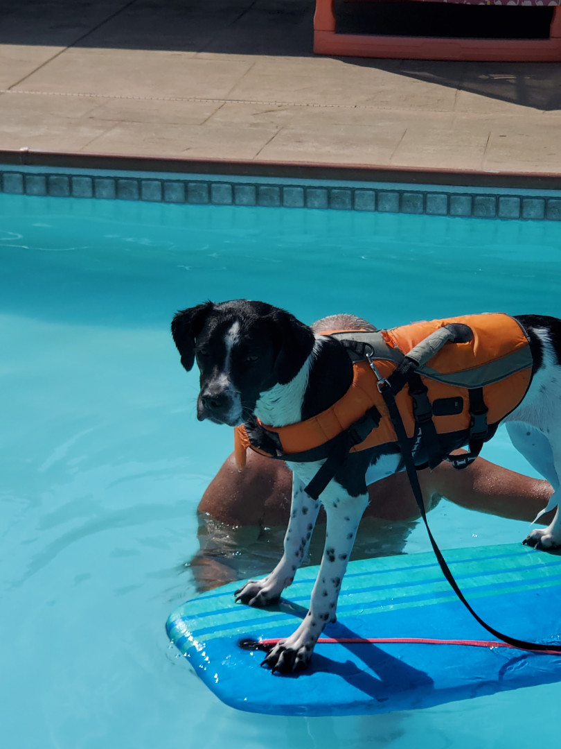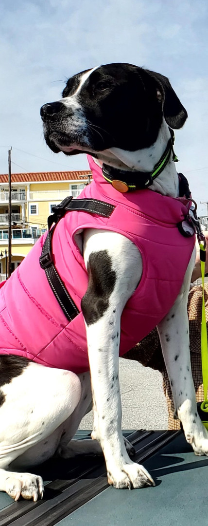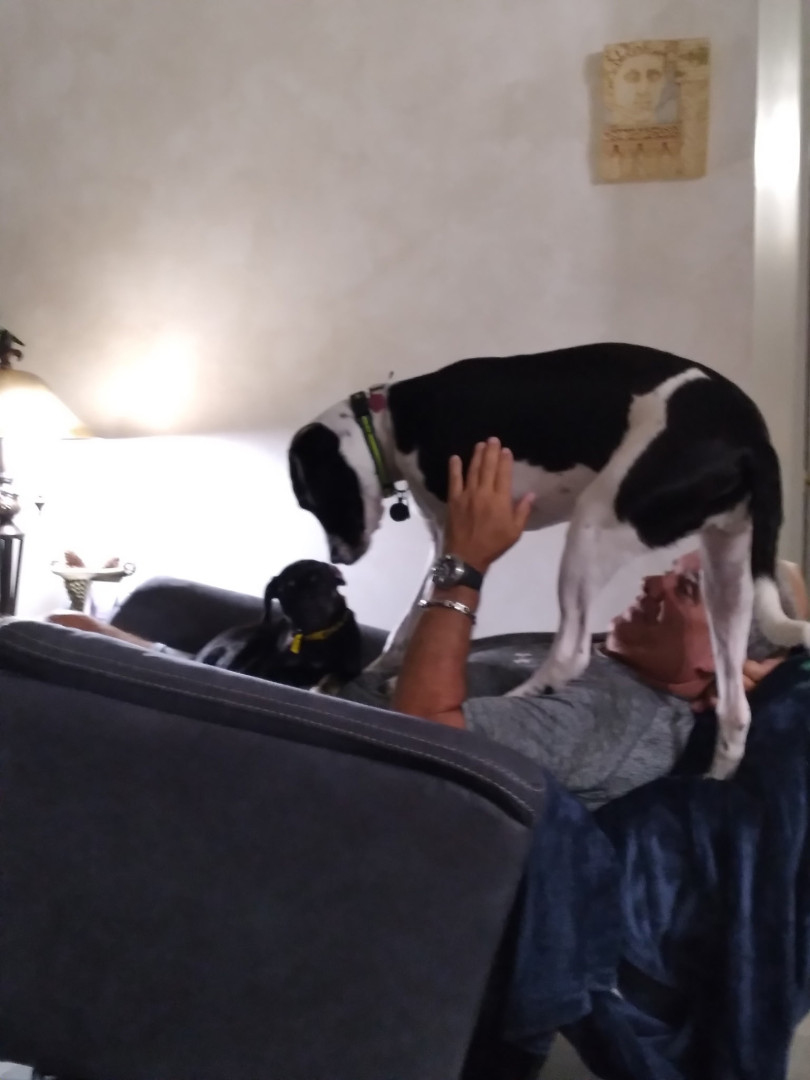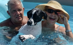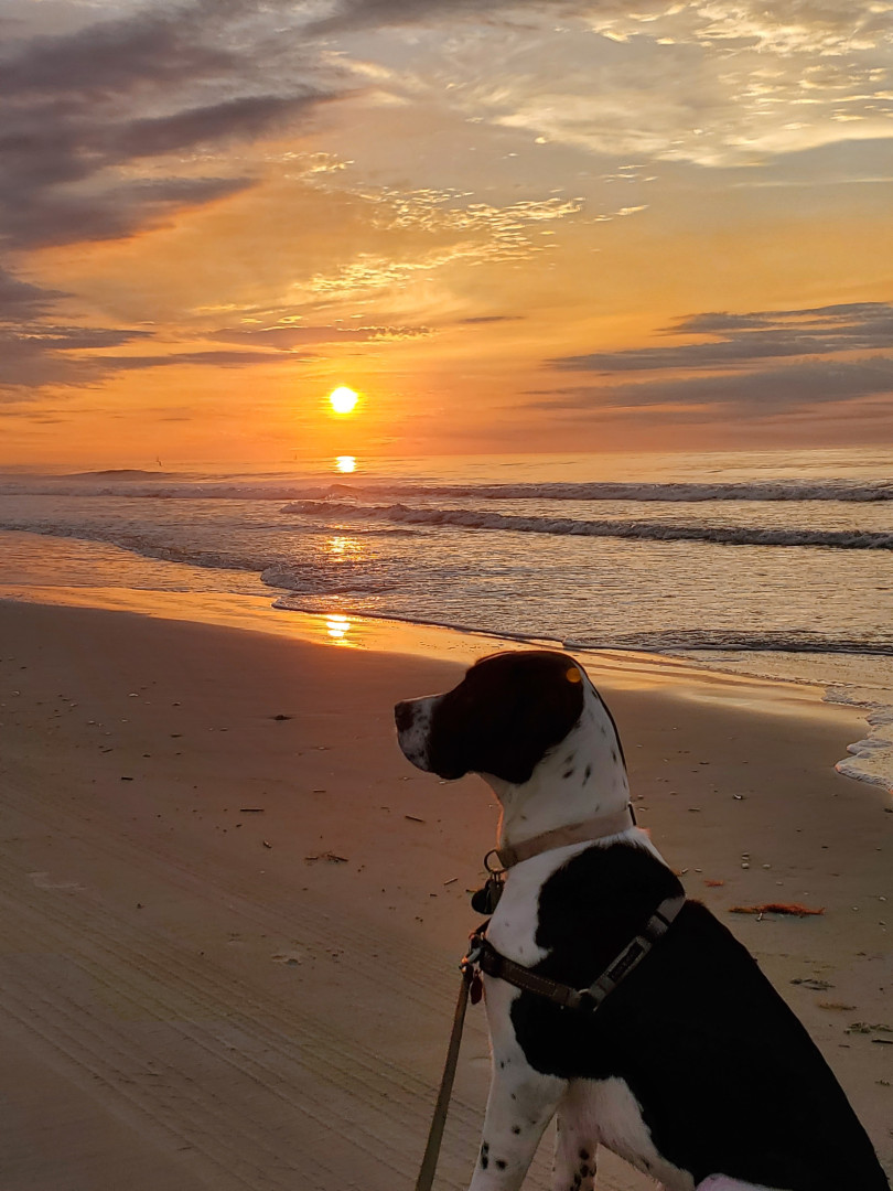Her amazing ability to jump extremely high. At seven months old form a seated position, Gia jumped to the top of a lifeguard stand with without even trying. She loves bombing around at the beach and in the ocean, chasing all the birds on the beach or in fields. She most of all loved digging in the dirt or climbing to top of piles of dirt when her daddy had major construction going on.