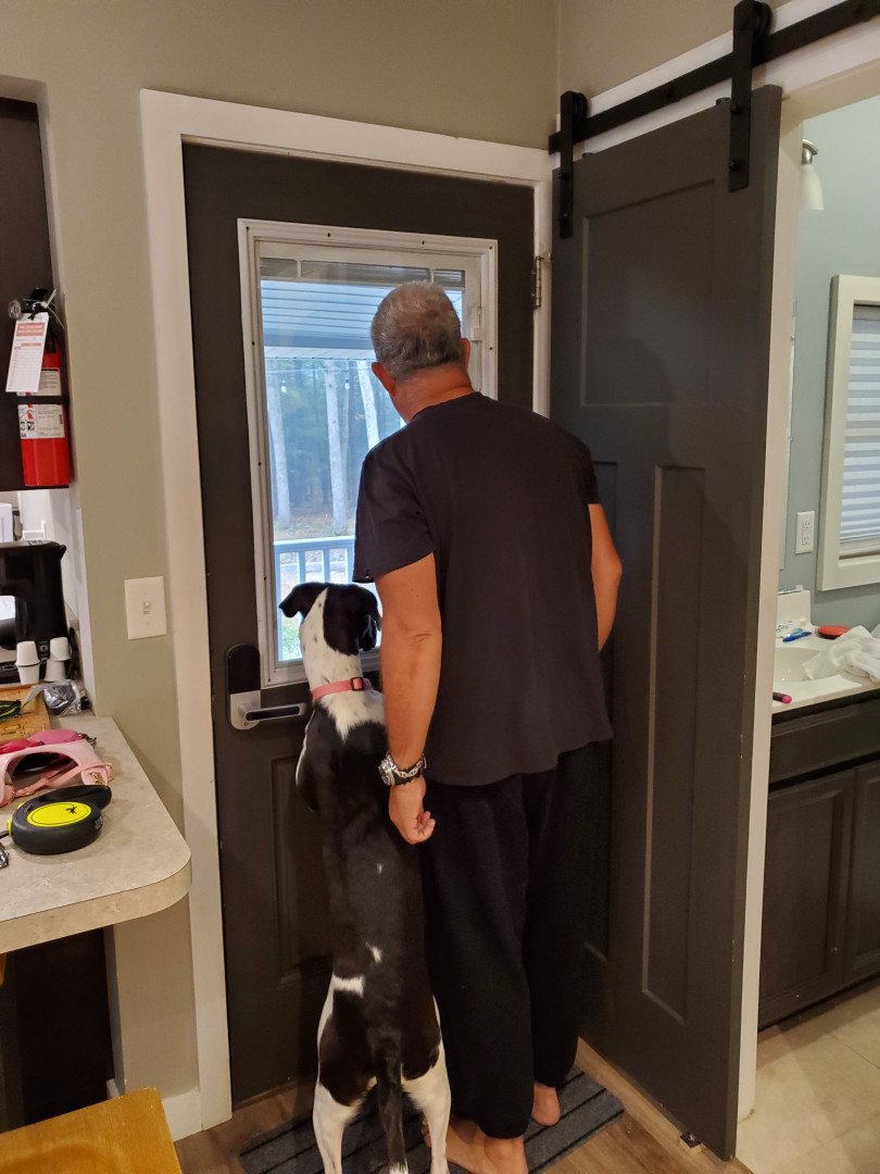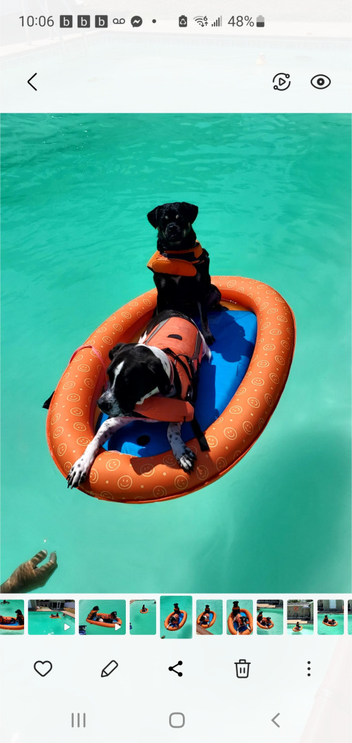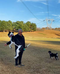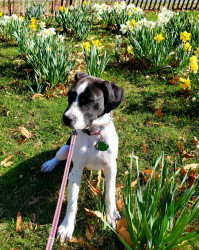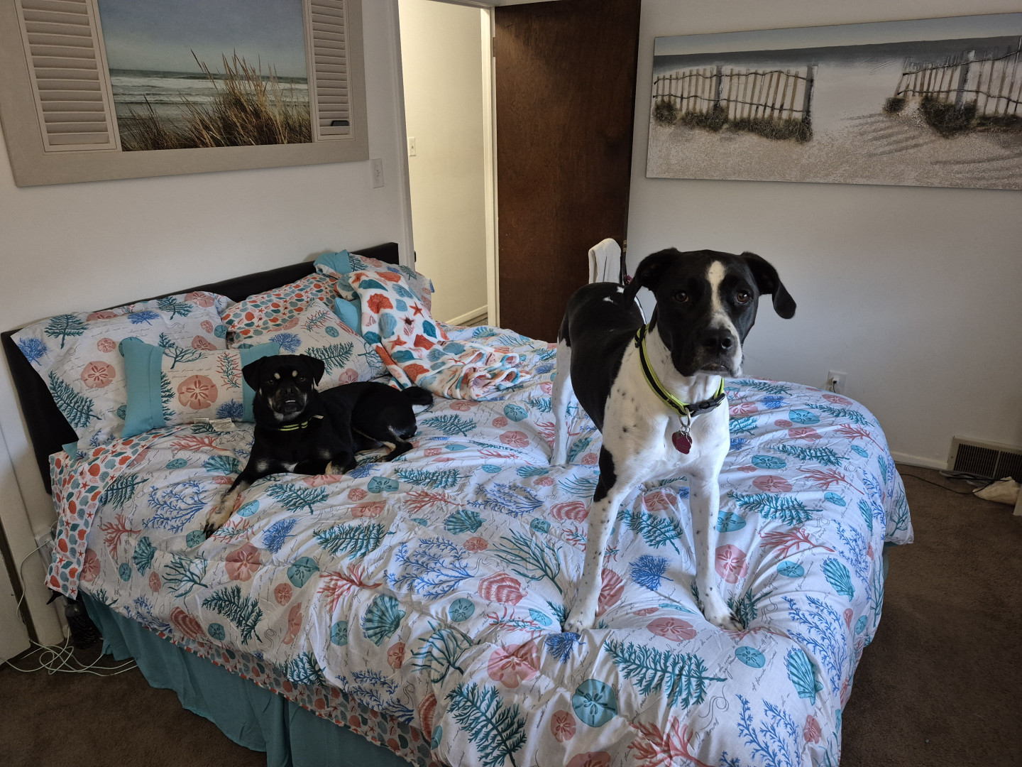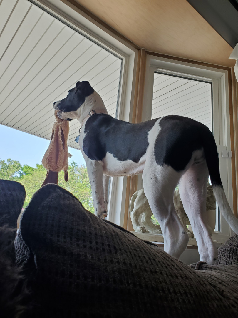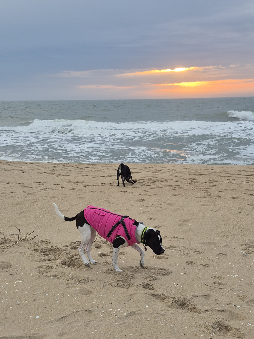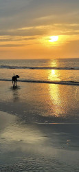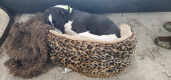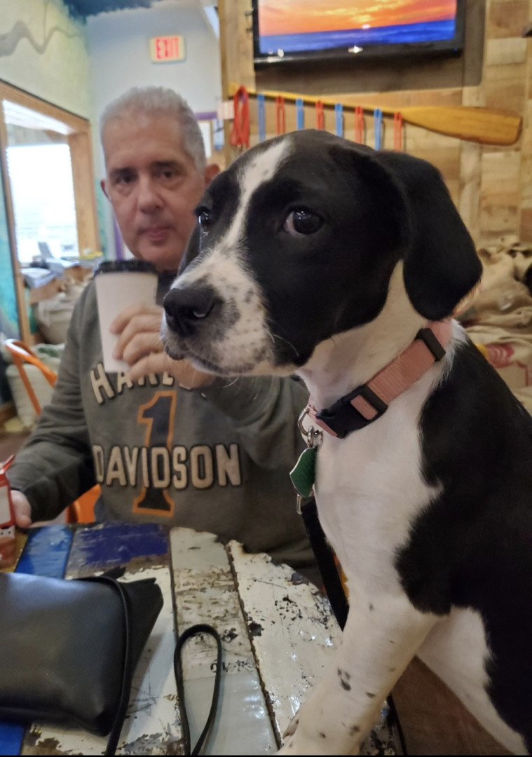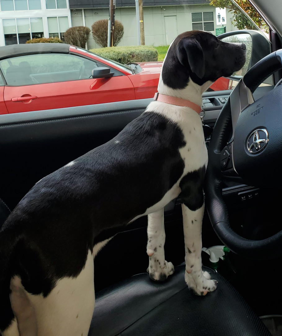 Her amazing ability to jump extremely high. At seven months old form a seated position, Gia jumped to the top of a lifeguard stand with without even trying. She loves bombing around at the beach and in the ocean, chasing all the birds on the beach or in fields. She most of all loved digging in the dirt or climbing to top of piles of dirt when her daddy had major construction going on.