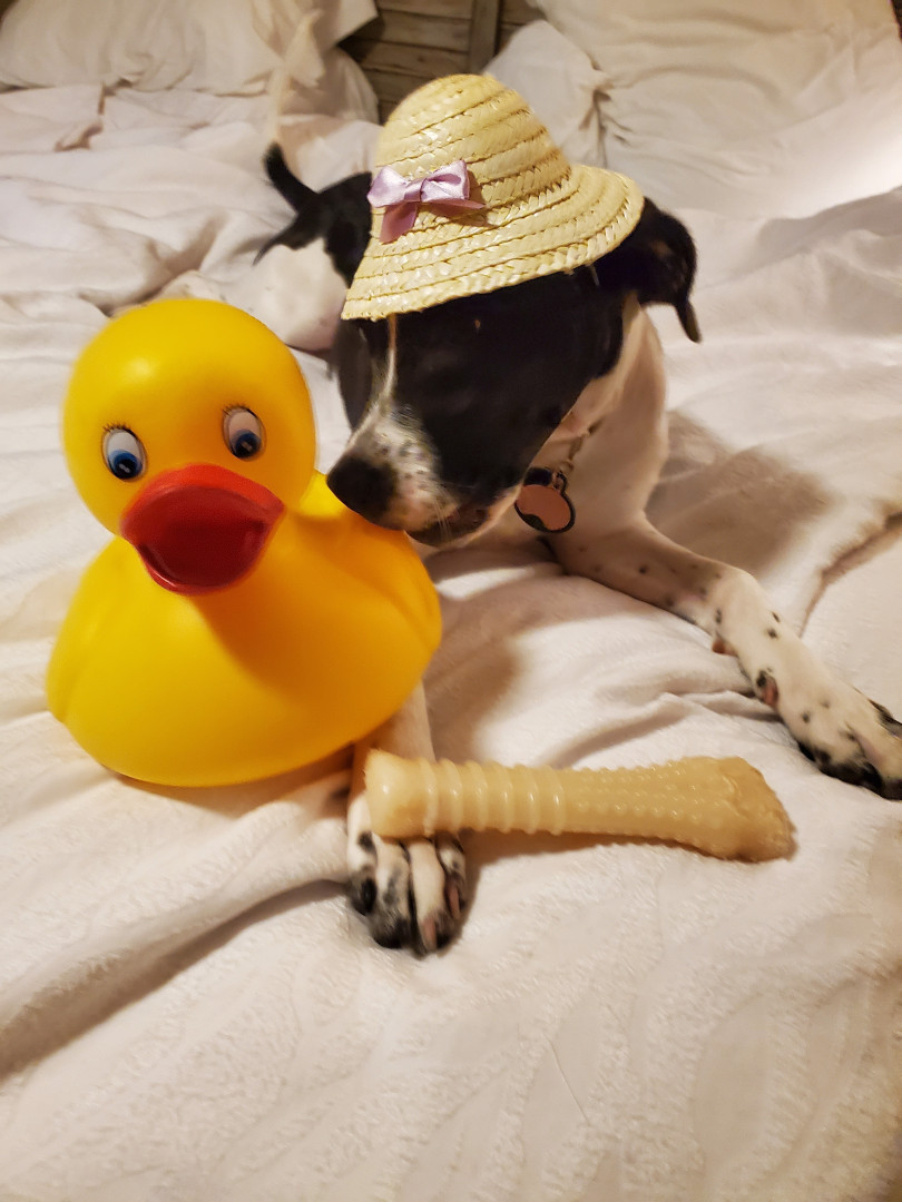 Learn MoreStuffed toys, bones. Favorite squeaky toys that make a lot of noise and chasing birds on the beach.
