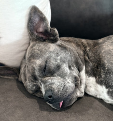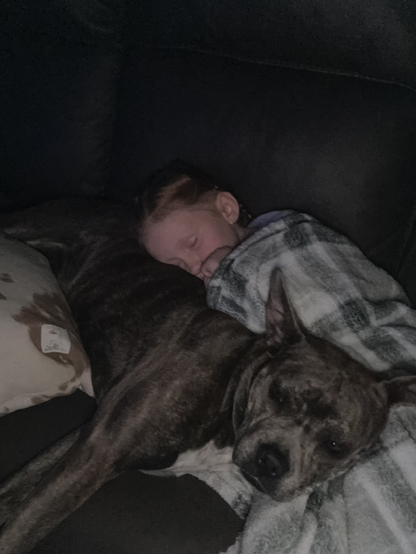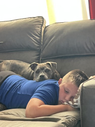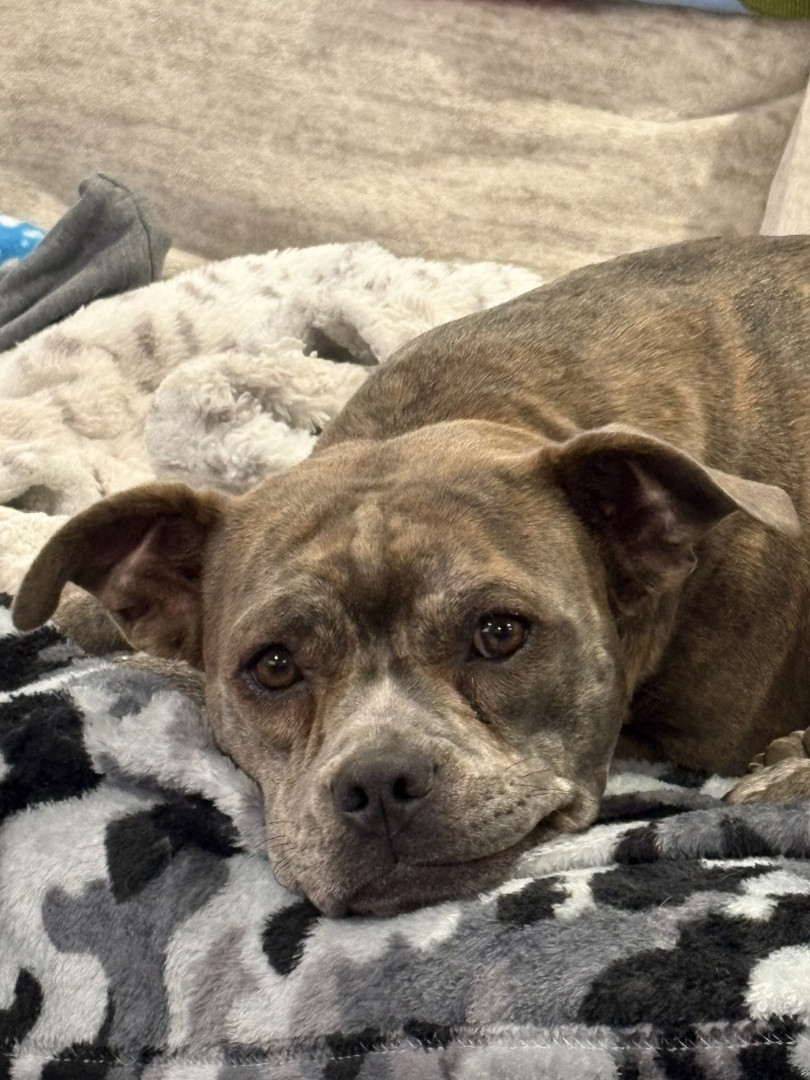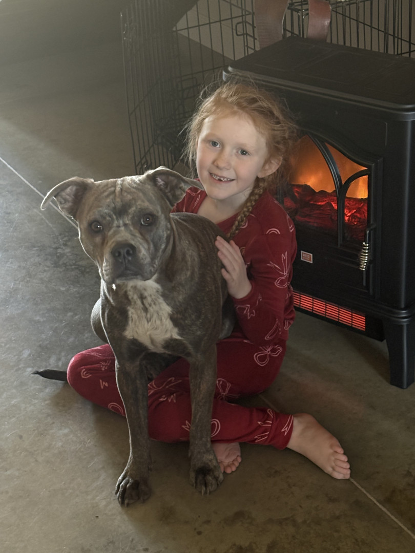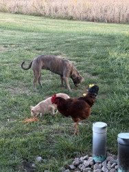 Gidget is a Boston Terrier- American Bulldog mix. She loves her family, her fellow farm friends, and especially her “kids” Grant and Ellie.