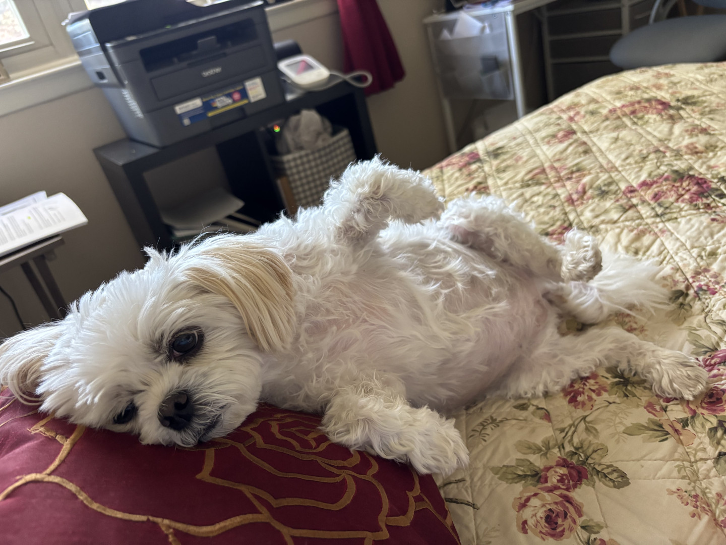 Gidget is a therapy dog who visits a nursing home where she engages with all of the residents. She’s patient and loving, she treats everyone like a best friend. I love that about her. She’s a perfect visitor.