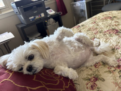 She prefers people over animals, although; she enjoys dogs. She will stop people on the path while walking, then she goes belly up for belly rubs.