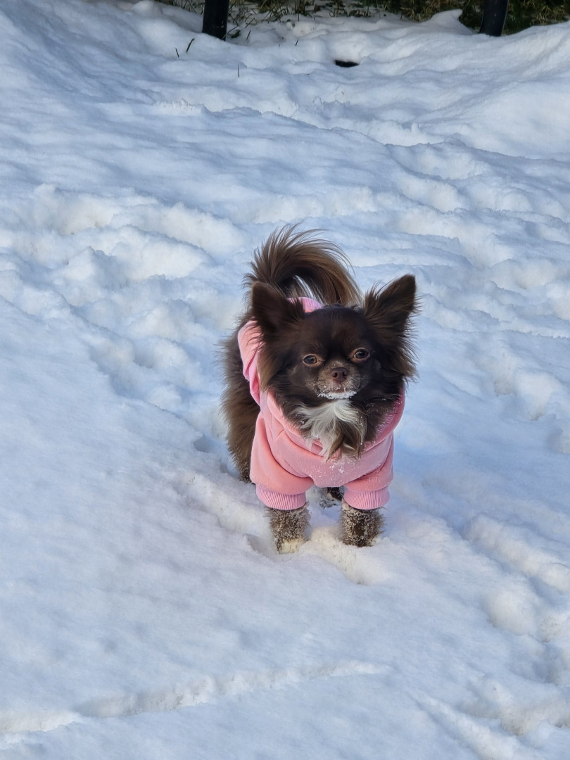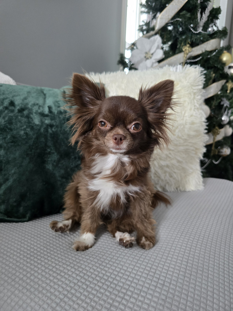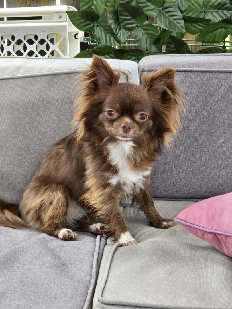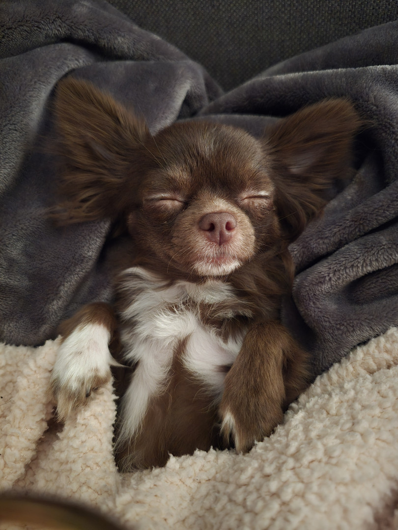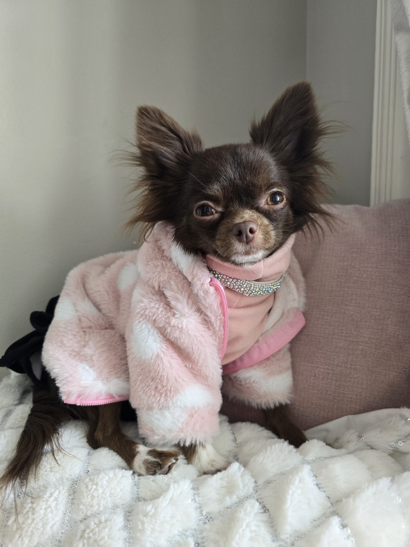 This is Gigi, a 1-year-old long-haired Chihuahua: part gremlin, part majestic fairy creature.