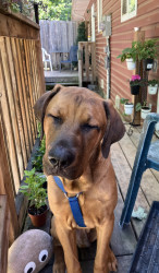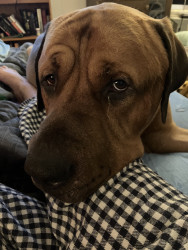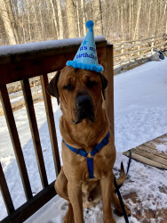 Giizhik is a relaxed Tosa Inu almost 3 years old bred from champions. He’s gentle, sweet and protective and loyal. However, he hogs the bed.