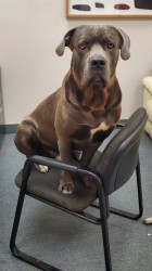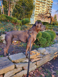 Gilbert is a big lover he loves everybody he knows to be gentle around kids and older people and especially likes his dog freinds big and small when he meets small dogs he gets down really low and crawls toward them he look funny and he gets sad if the other dogs don't want to say Hi. When I take him out late at night there usually isn't many dog out and he sits outside when we get back from our walk waiting to see a friend I have to make him come in. We love him
