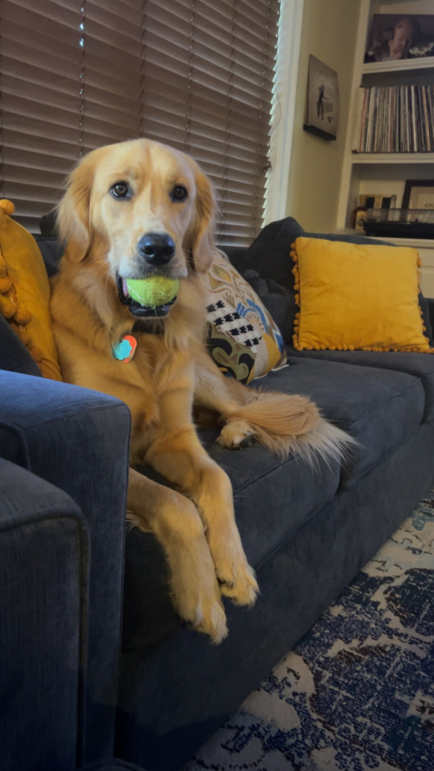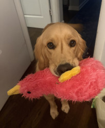 Ginger is such a happy girl! She loves her stuffed animals and her tennis balls! She loves to go on walks and play with her sister Mollie!