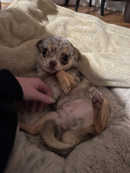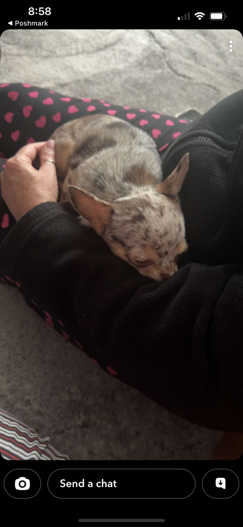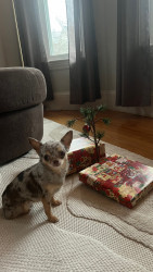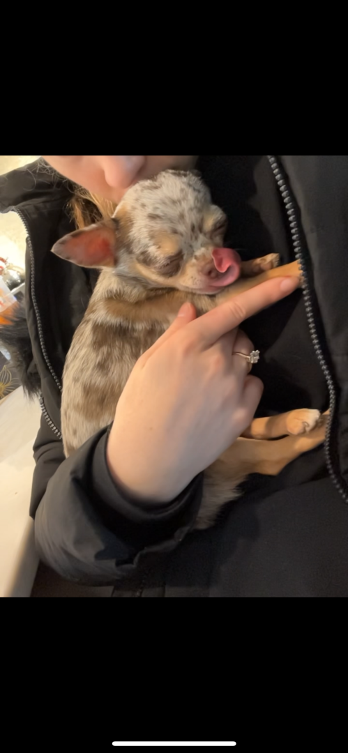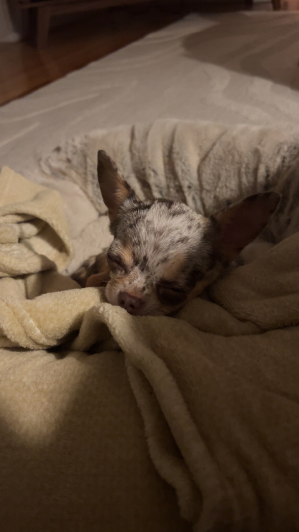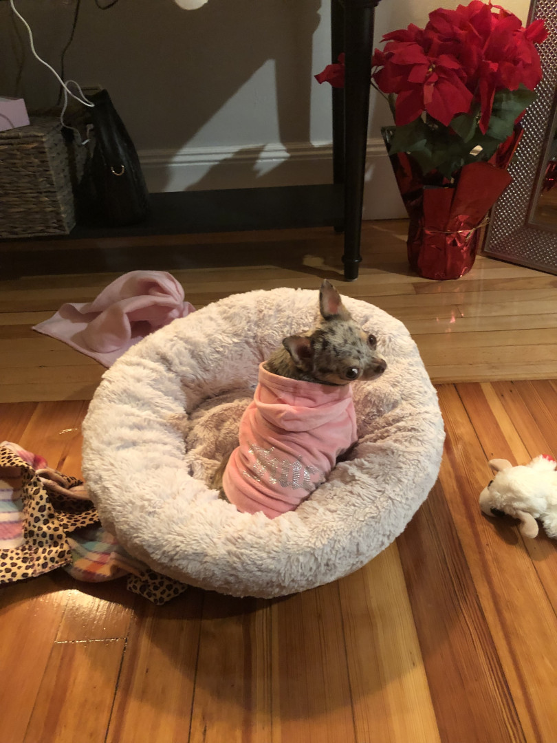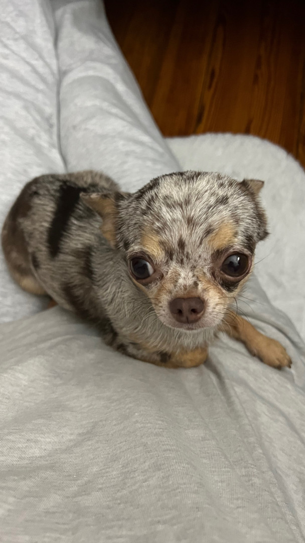 4yr old, 4 pound chihuahua. Rescued from Mississippi where she was used as a breeding dog. She is extremely loving and affectionate.