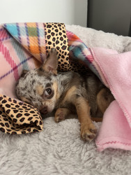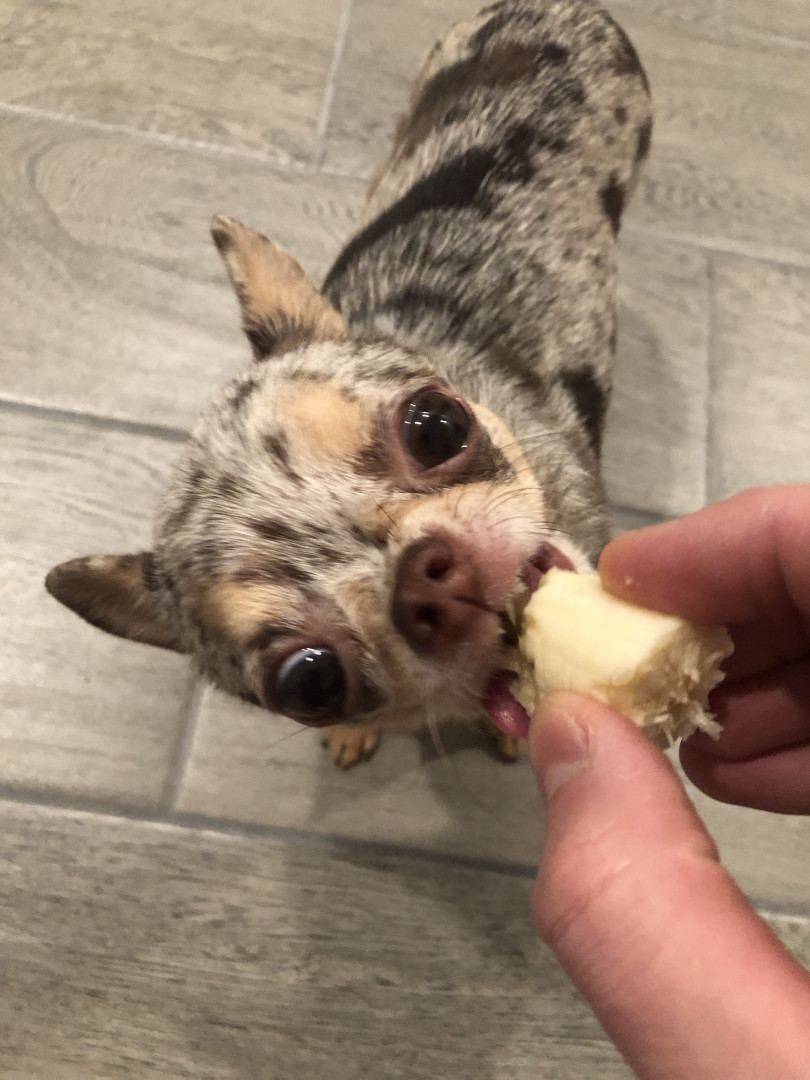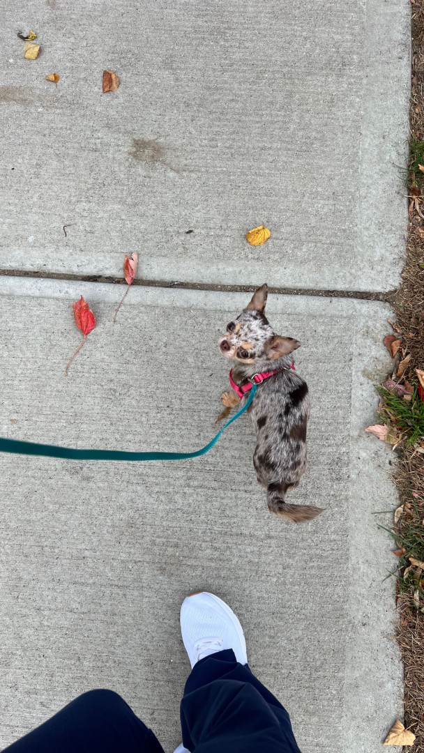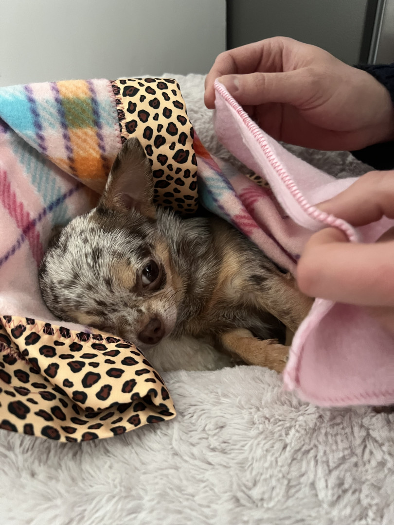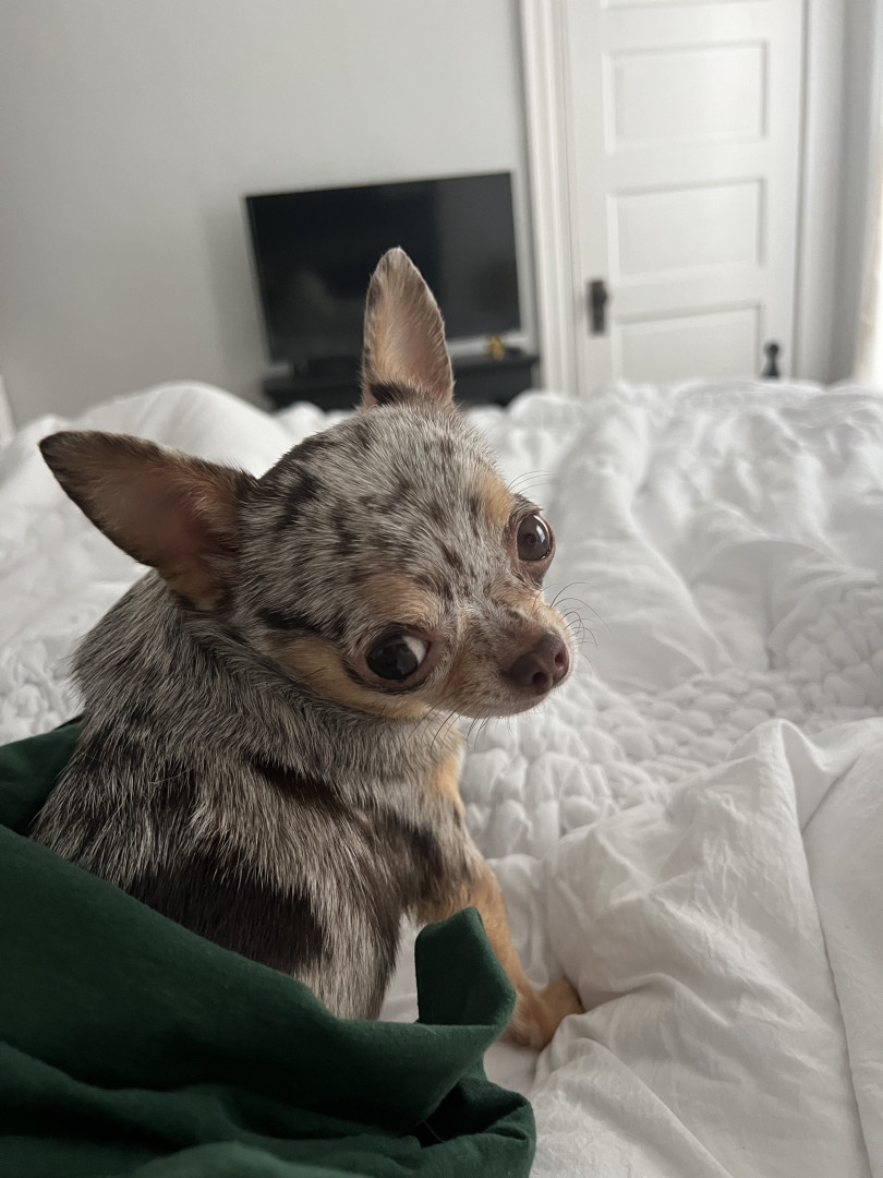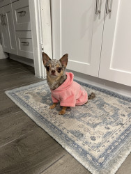 4yr old, 4 pound chihuahua. Rescued from Mississippi where she was used as a breeding dog. She is extremely loving and affectionate.