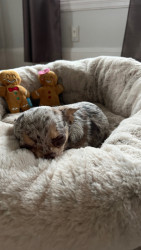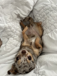 Certified Love Bug - Runs to anywhere she hears kissing and insists on joining in on any kisses she can get. She also has a very rare chocolate merele coat.