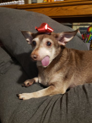 Well his name is gizmo he is very sweet and cuddly and smart and all around great dog
