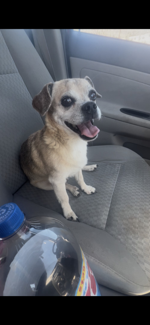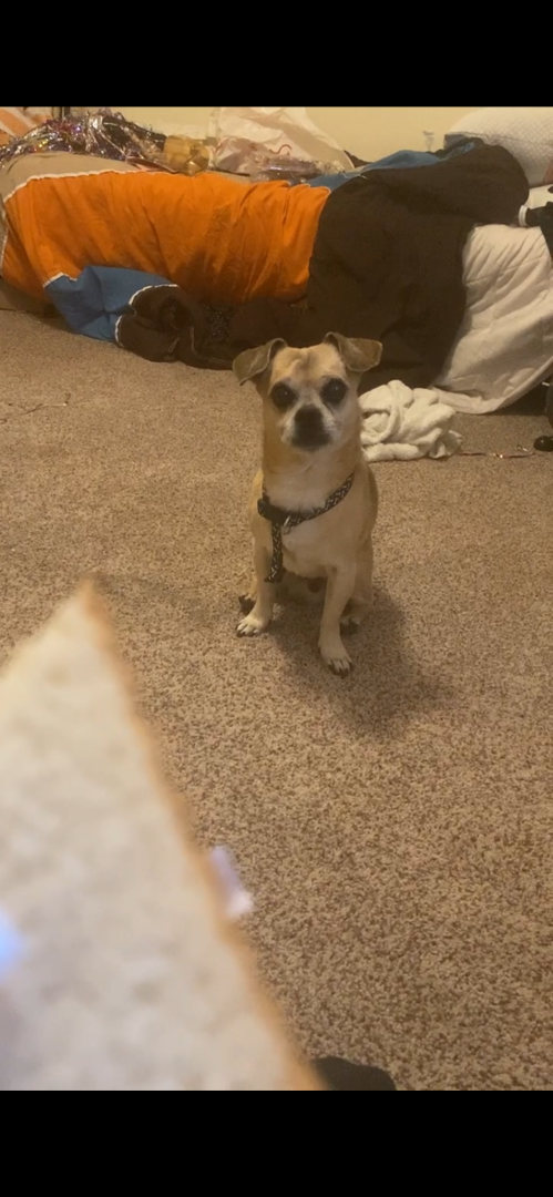 This is gizmo. He is super cuddly and loves car rides and is overall a sweetheart!! he is half Chihuahua half pug!!