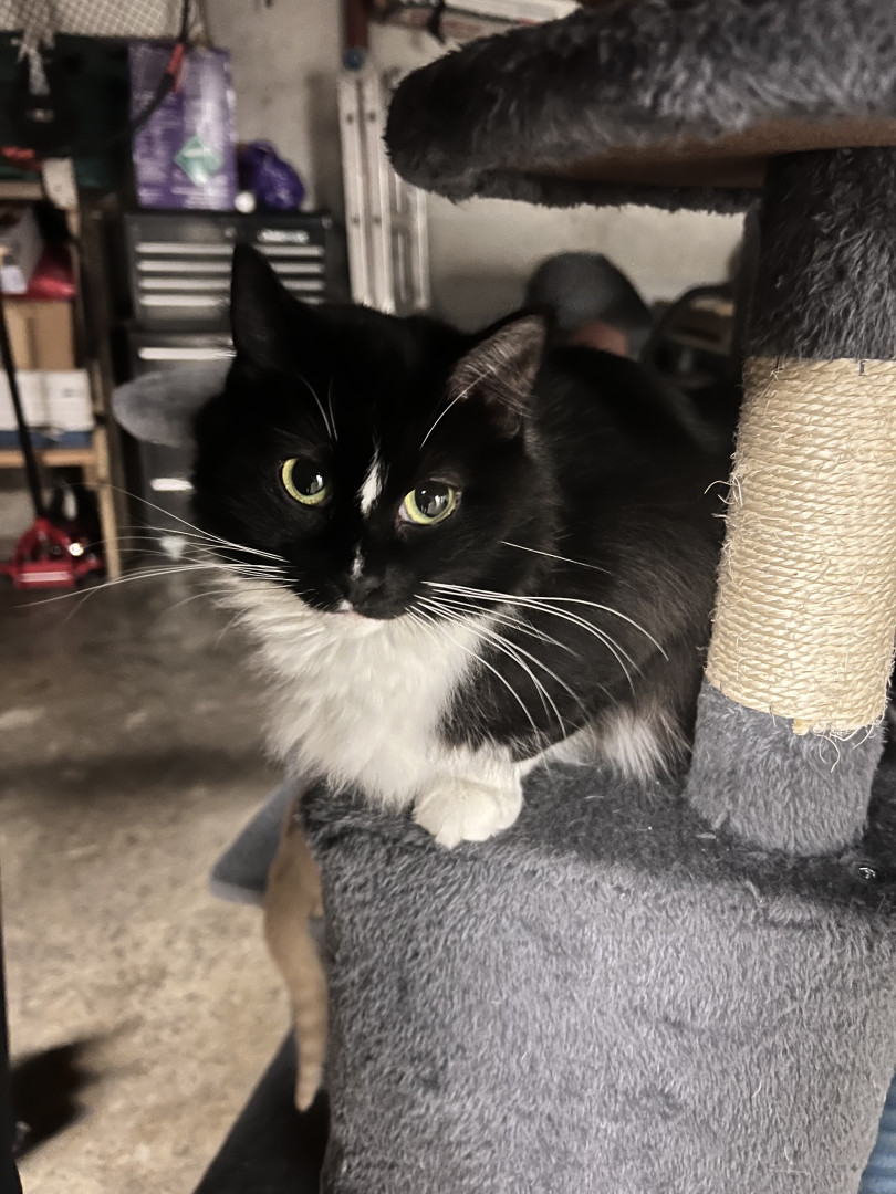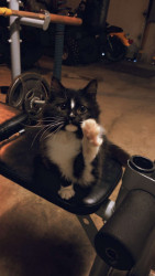 Gizmo was a saved stray cat when she was a little kitten, she’s been loved and taken care of ever since My Fiancé saved her. Now she’s super healthy with 5 babies , and she is an aunt to 6 other kittens :) , she loves friskies , she protects all of her babies and her nephews. she’s fierce, but so loving.