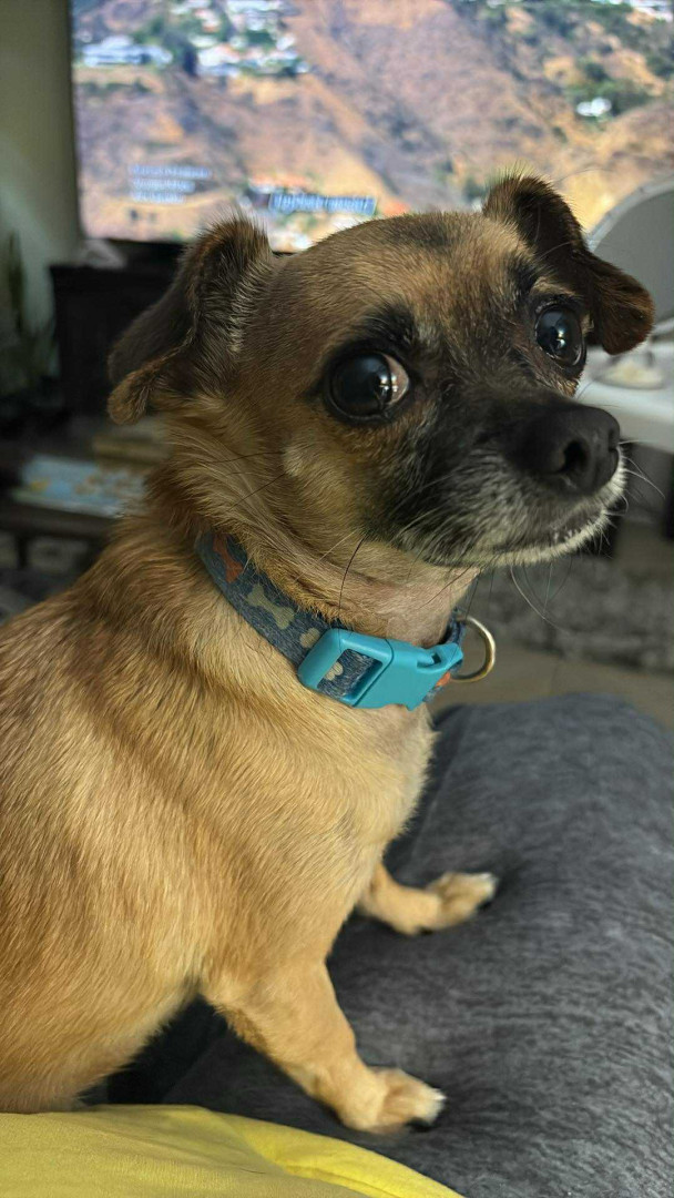 Gizmo is goofy. He will stand on me and just stare. His inquisitive eyes often have me wondering what he is thinking about. He lis playful.