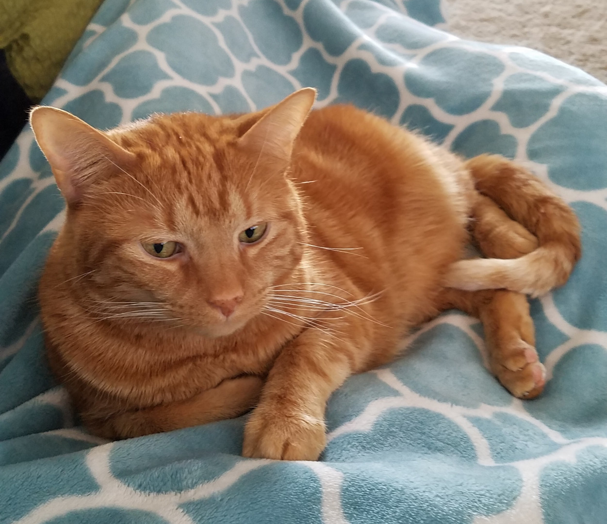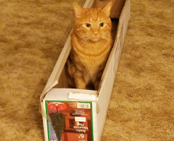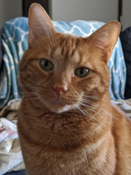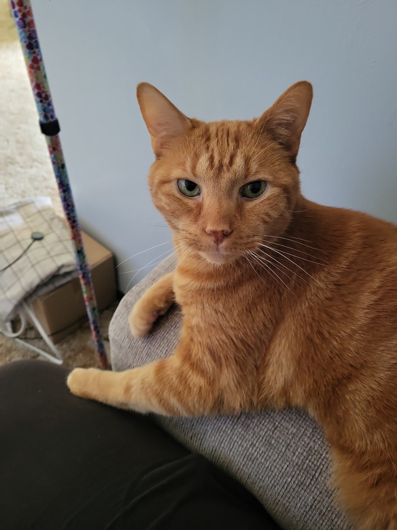 Goliath is the most loving snuggle bug. He curls up on my lap the moment I sit down and is tolerant of the grandkids and their hugging.