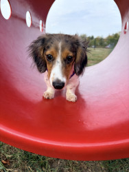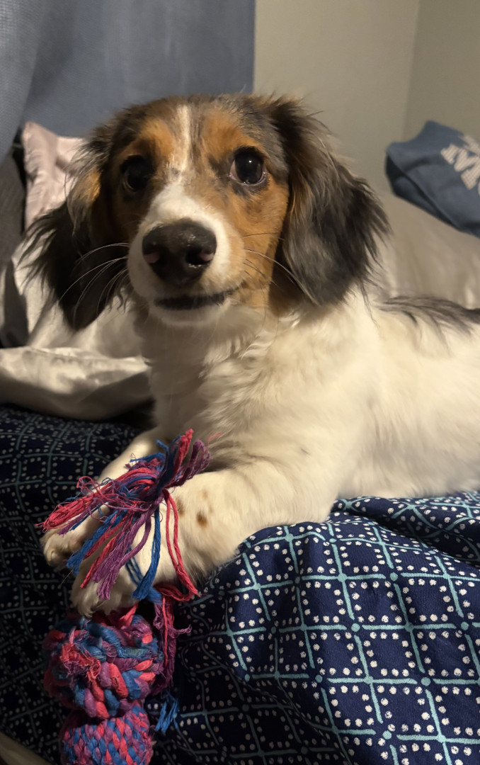 Goose has all the love to give!!! He’s very affectionate, playful, and SMART! He’s the cutest version of the “All American dog” floppy ears, puppy eyes, and just the most precious little face!