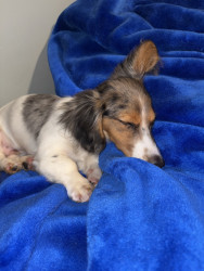 Goose is a very cuddly, spunky, playful puppy! He loves to fetch his toy squirrel, and begging his mom for milk bones!