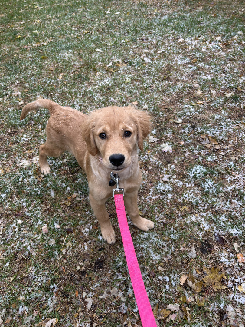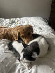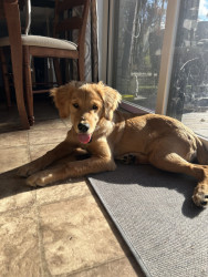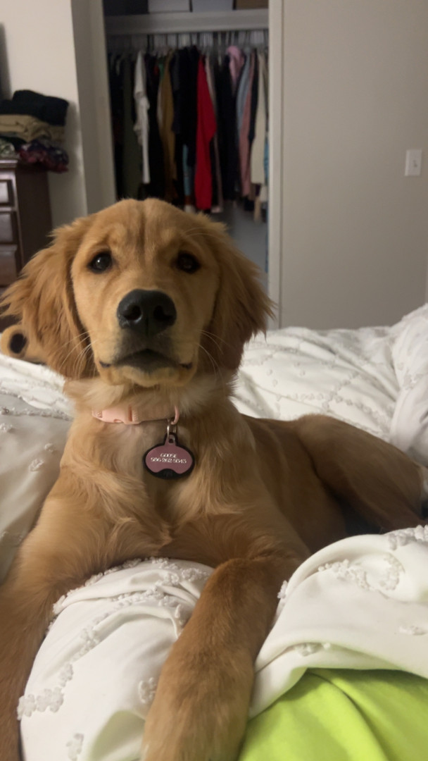 Goose is a hyper, beautiful golden retriever who loves EVERY person she meets, and proudly plays the energetic little sister to two kitties!