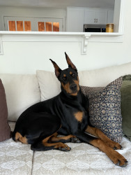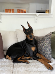 Goose is an 8 month old Doberman Pinscher. He loves bully sticks, cuddling and other puppies!