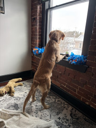Learn MoreGooses favorite toy is his mom aine they are always playing. Though he does dabble in the occasional inanimate object retrieving.
