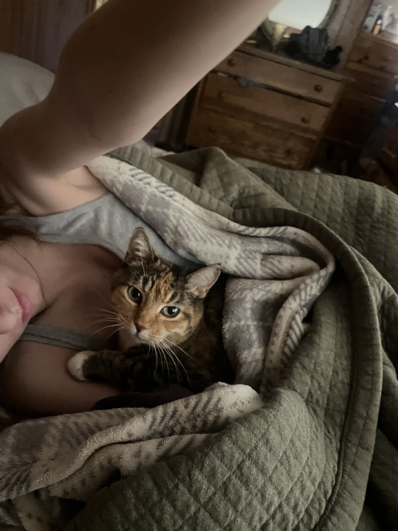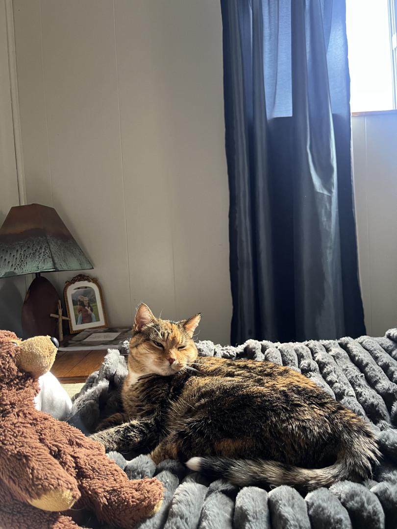 Gracie is 11 years old and loves to cuddle under blankets, curl up on the couch, and hunt mice and bring them to you as a prize!