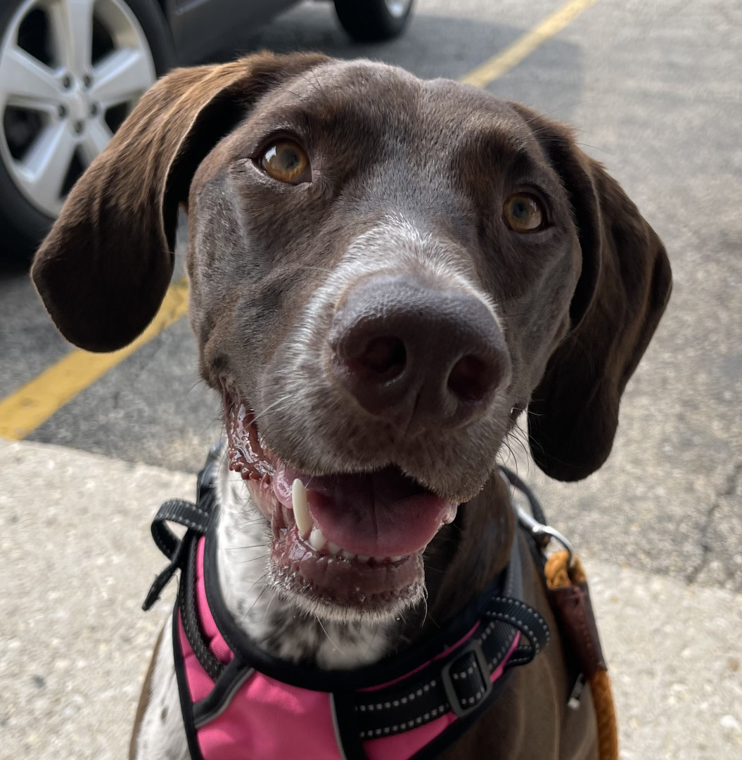Gracie is the sweetest, most loving girl. She is so happy and her butt is constantly wiggling. She smiles at people when she sees them!