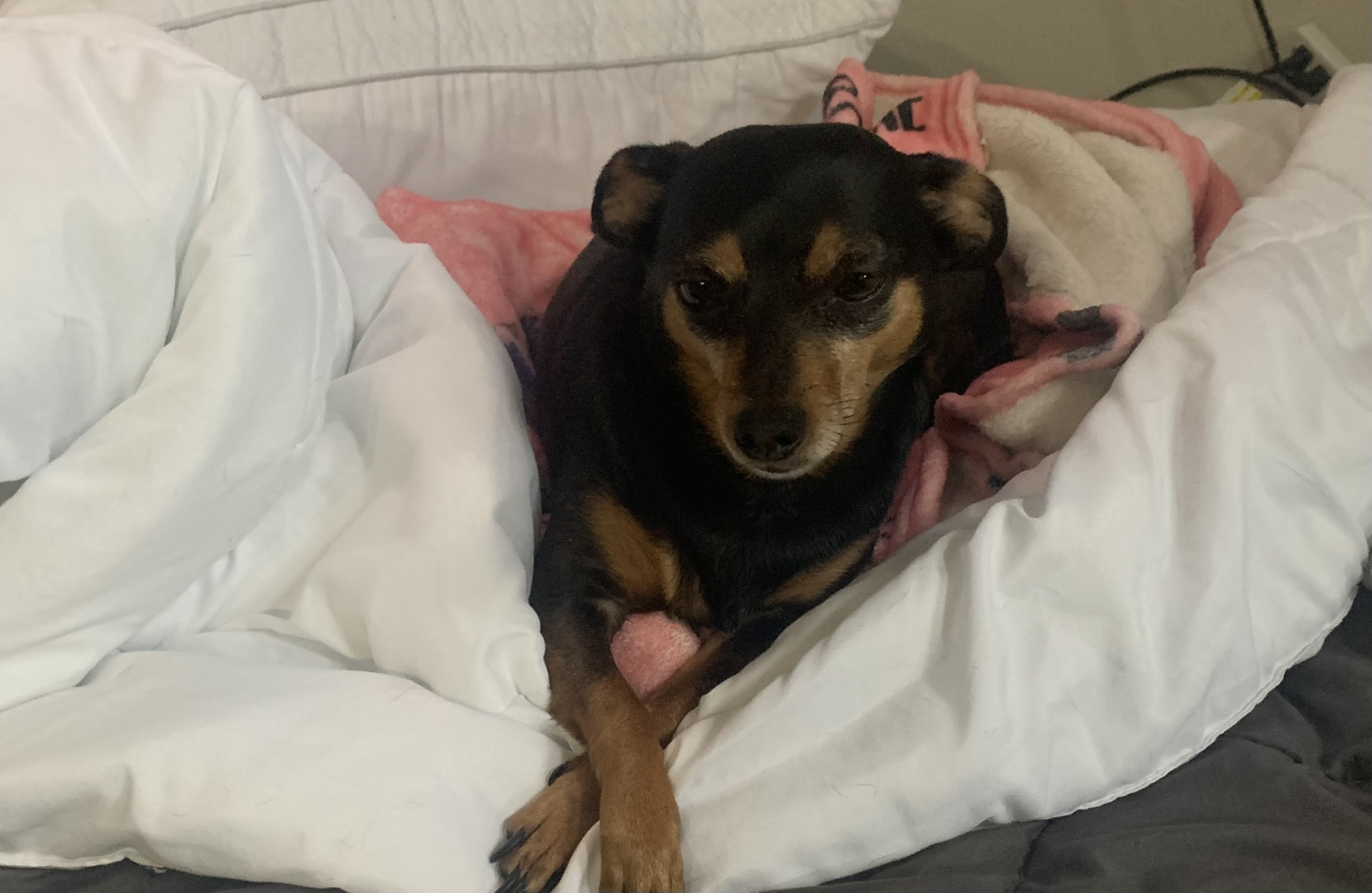 It was love at first sight when I rescued her . She has been such a good companion for me , she goes everywhere that I do and is the best