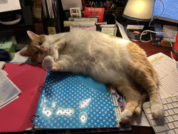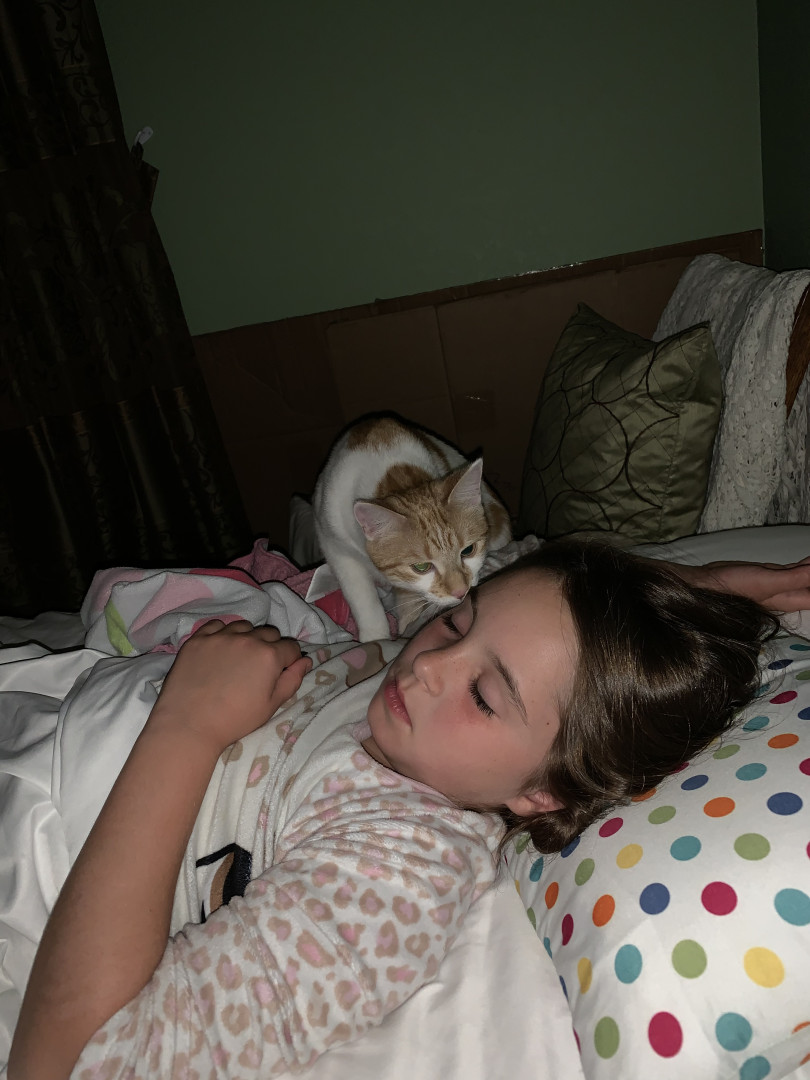Well she has a stuffed slough which she sleeps with. She also loves greenies cat treats. It helps with her breath too! Lol