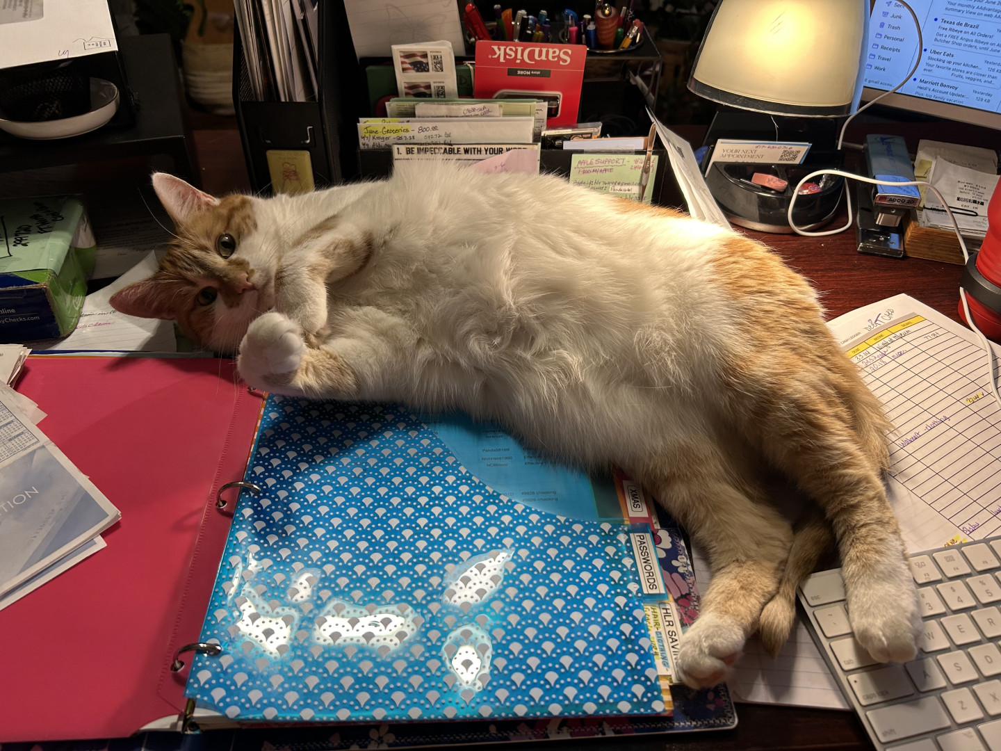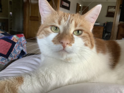 When she wants a treat she pats my arm(claws in not out) when I look at her she taps her treat jar. She also gets under the bed blankets to keep warm. She is such a southern cat.