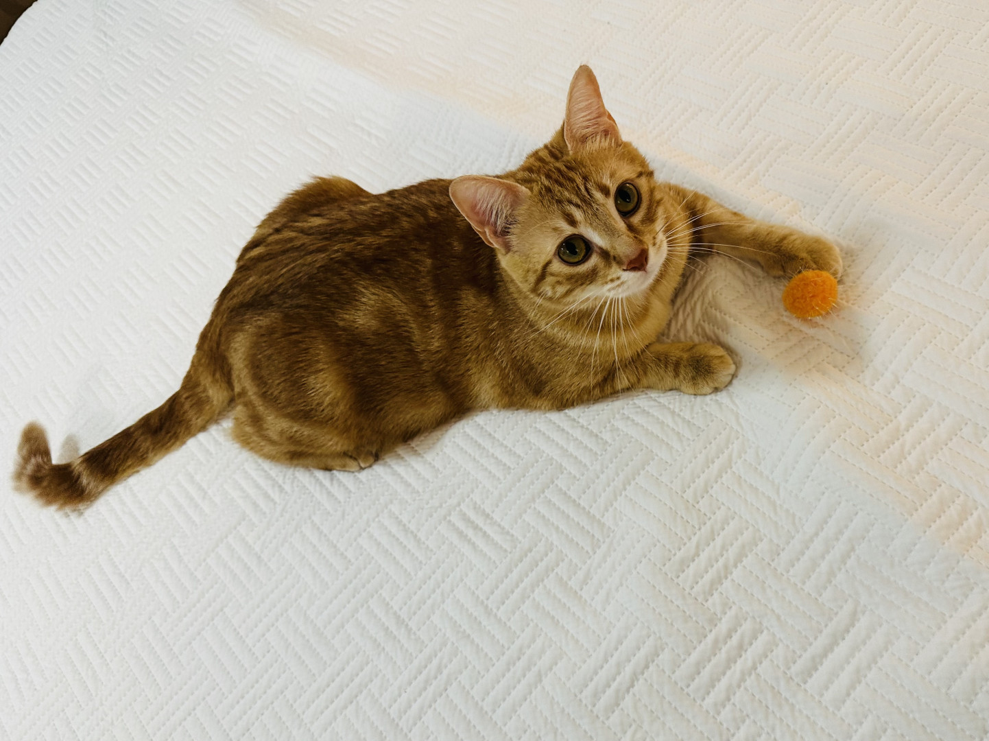 Gracie plays fetch like a dog, but with the ego of a tiny athlete. She launches after her glitter balls, struts back like she just won a trophy, and drops them at you - one ball to chase, another to forget - before fixing you with a bossy little glare that screams, “Again!” She also loves snoozing in the most ridiculous positions!