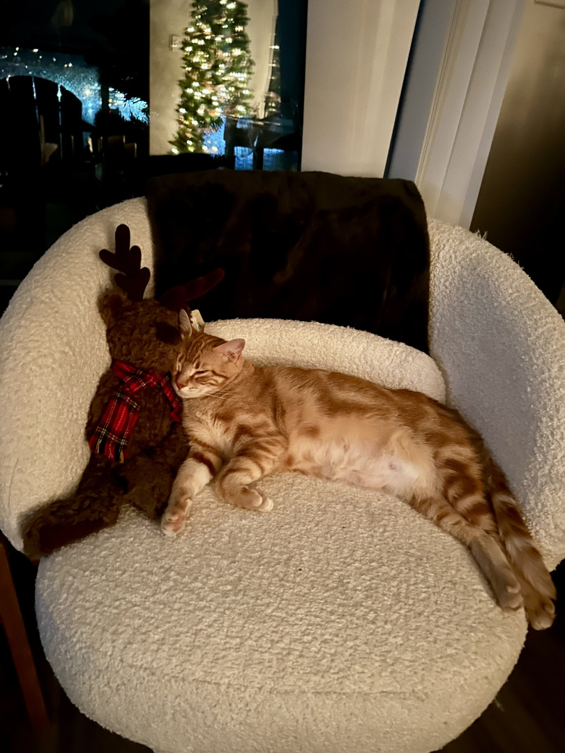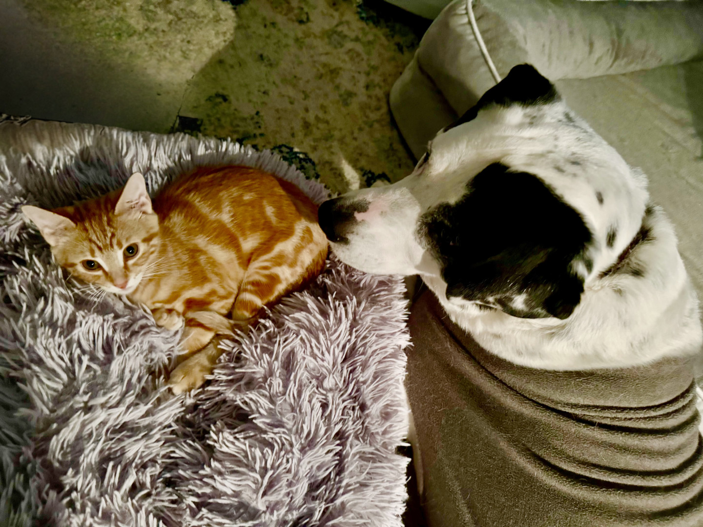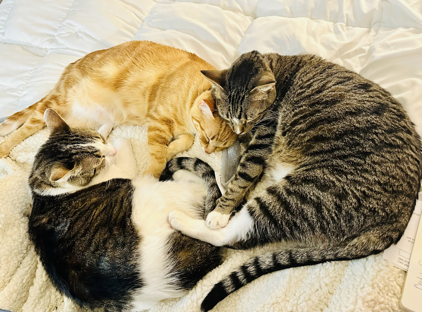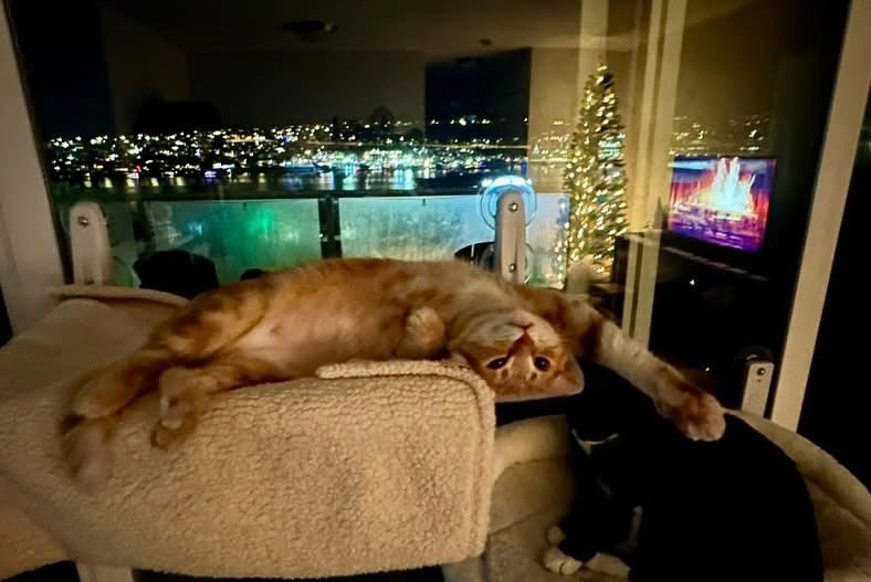 Gracie Jane is a rare orange girl cat with extra spice & a huge heart. Rescued as a tiny kitten at a campground during a Dave Matthews concert at the Gorge in WA state on Labor Day weekend 2024, she’s been tenacious from the start. She’s a 1½-year-old firecracker who loves to wrestle and pester her older brothers, rescued street cats from Los Angeles & Happy Cappy, her rescue dog brother. Gracie Jane is sassy, playful, and full of personality, a true little rock star survivor.