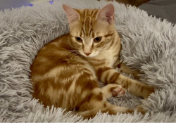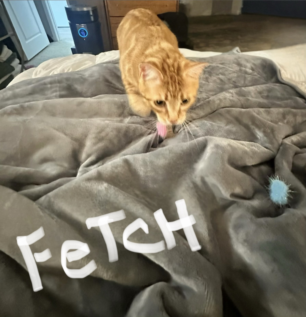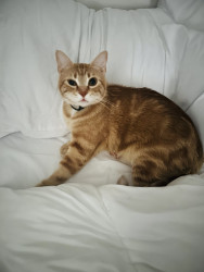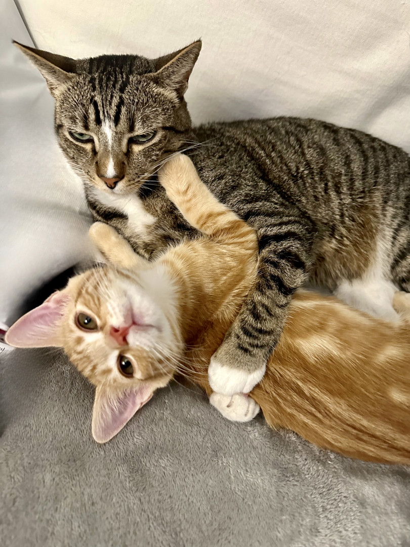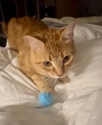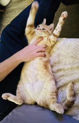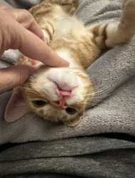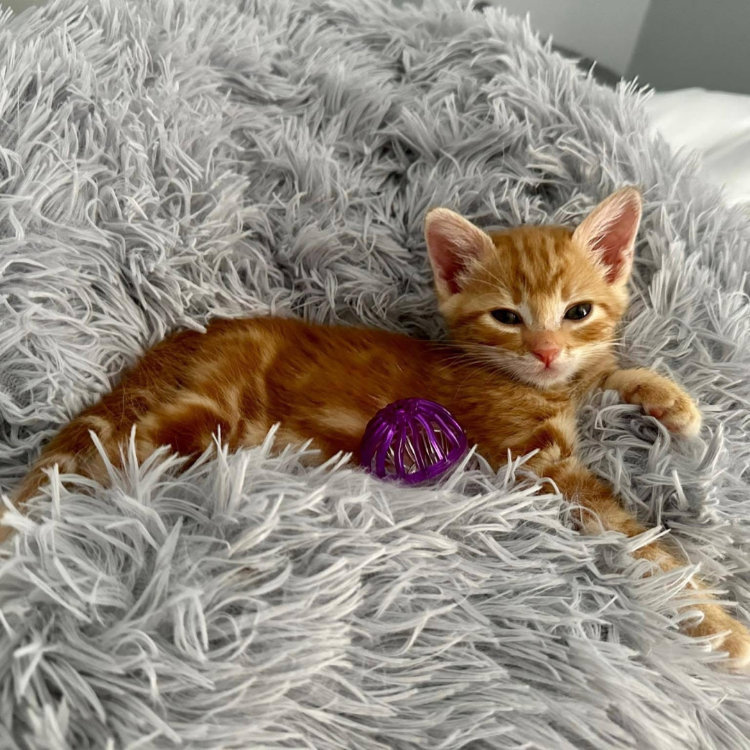 Learn MoreGracie’s favorite toy is her spiral spring - she launches it, chases it, and zooms after it like a tiny orange comet. She LOVES treats and will shamelessly try to steal food off your plate - “sweet like candy to my soul,” she goes for snacks with flair. Greenies are her top choice, and she’d happily eat a whole bag. When she finishes her own food, she moves on to her brothers’ plates too, a little feral sass shining through.