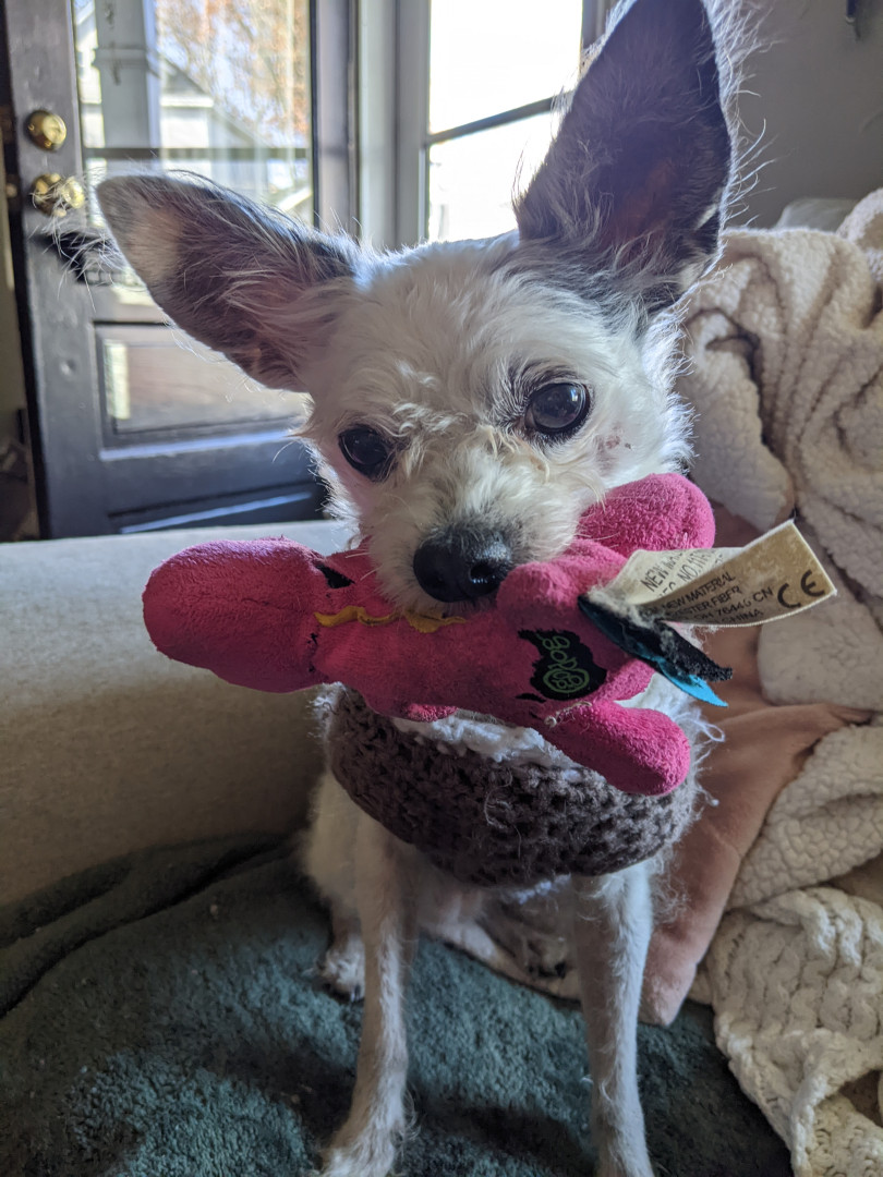 Gracie is a Poodle, Chihuahua mix that is absolutely as sweet as she looks. She has been with us since 2014, making her 14 years old.