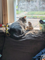 Grapes a good loving cat. Loves to be peted on his own terms. He loves hanging out with best friend Waldo are bearded dragon.