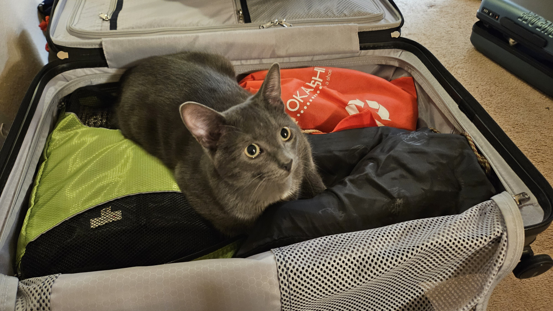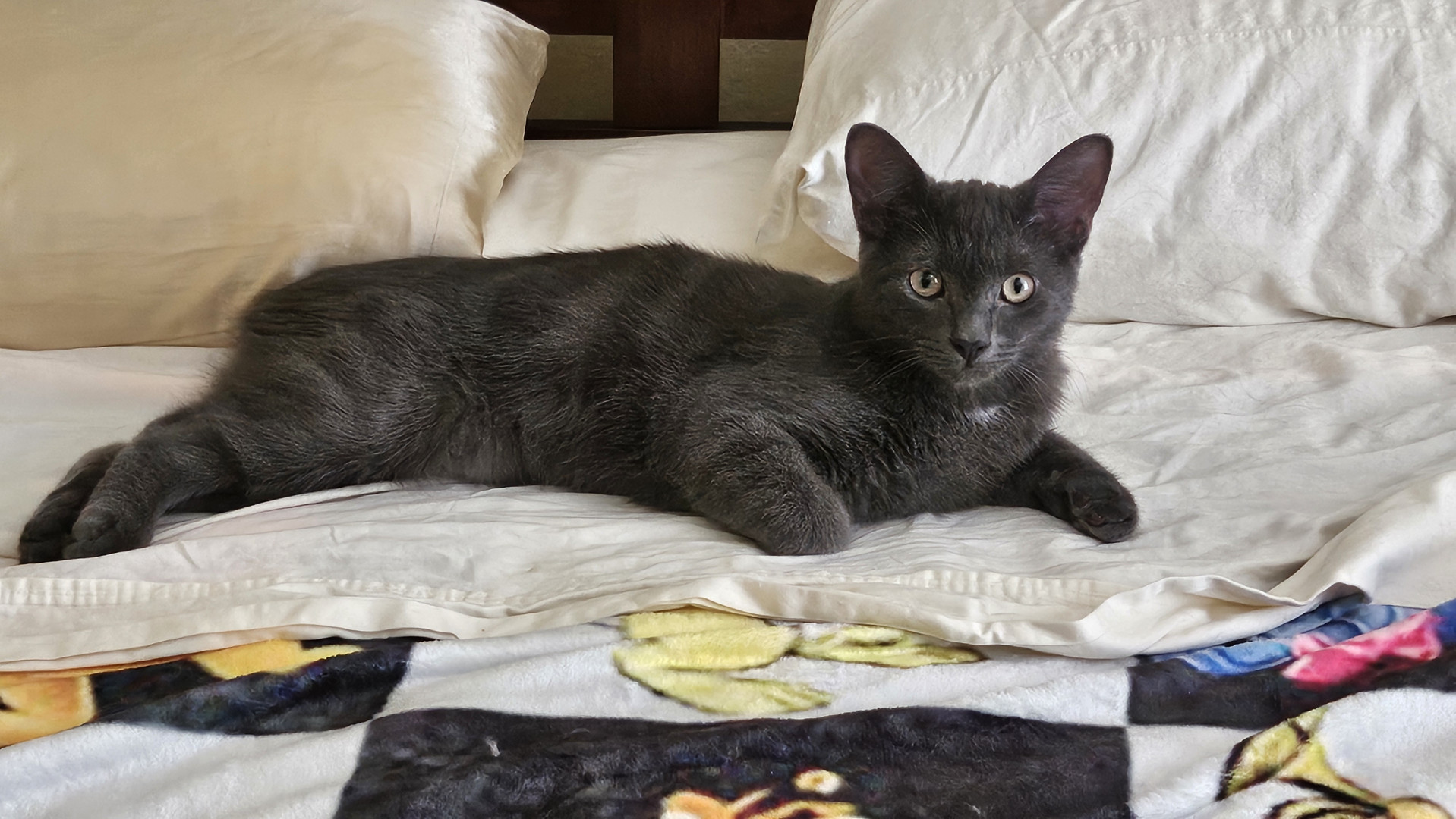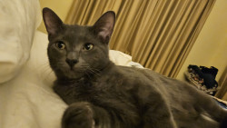 Grayson is always happy even when he was recuperating from surgeries (he had 2). At a photo shoot he decided that he was a cat model!
