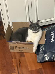 Learn MoreGrayson loves inspecting and hanging out in cardboard boxes when we receive packages. Grayson will never refuse any treat, but he does love Meowee Savory Spoonables lickable cat treats and Applaws’ Chicken Filet and Rosemary & Salmon Fillet treats.