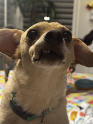 This is Griffin! He’s a little chihuahua mix. He loves everyone and cuddles. He shakes when he hears laundry machine noises and fire alarms.